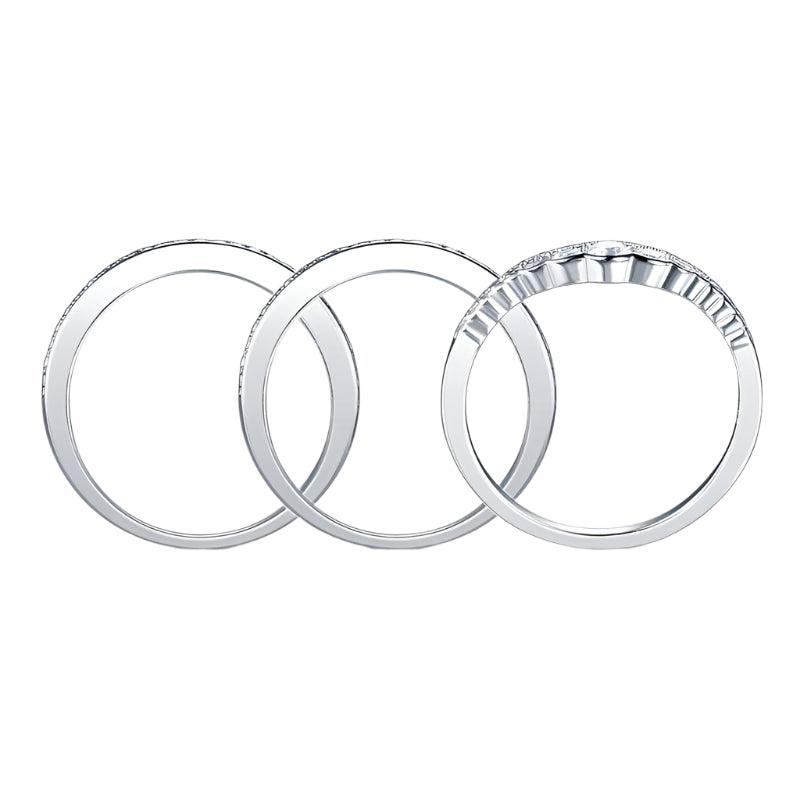 Shimmer and shine on your special day with this exquisite wedding band set. Made with high-quality 925 sterling silver and featuring sparkling created diamonds, this set is the perfect symbol of your everlasting love. Make a lasting impression with this stunning 3-piece set.