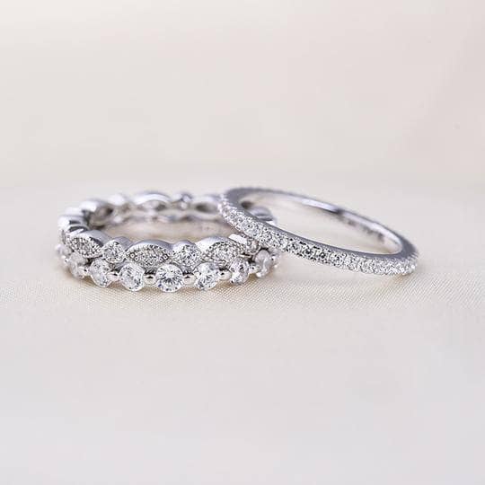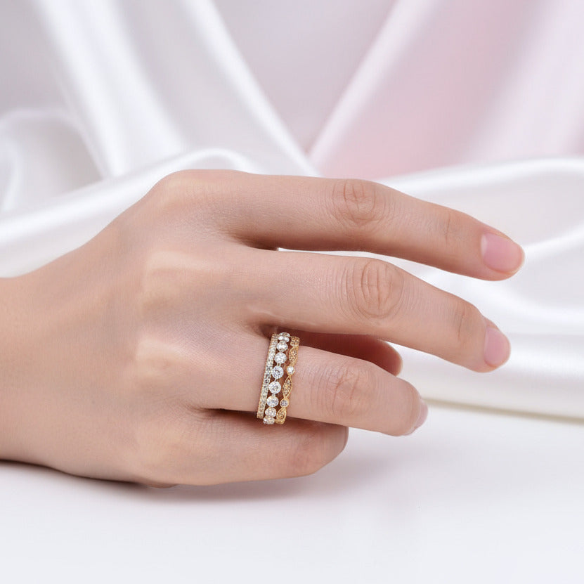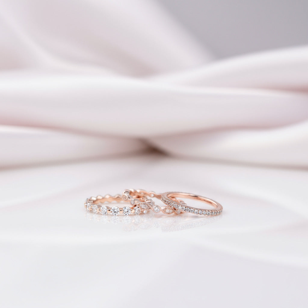 Art Deco 3-Pieces Stackable Wedding Band Set