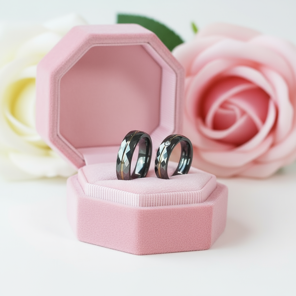 Multi-faceted Tungsten Carbide Wedding Ring Band with Diamond