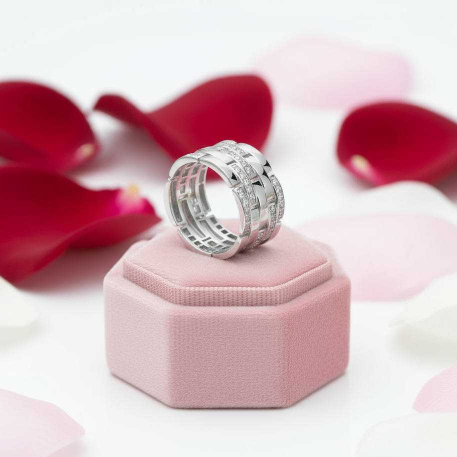Multi-Row Pave Diamond Interlocking Wedding Band