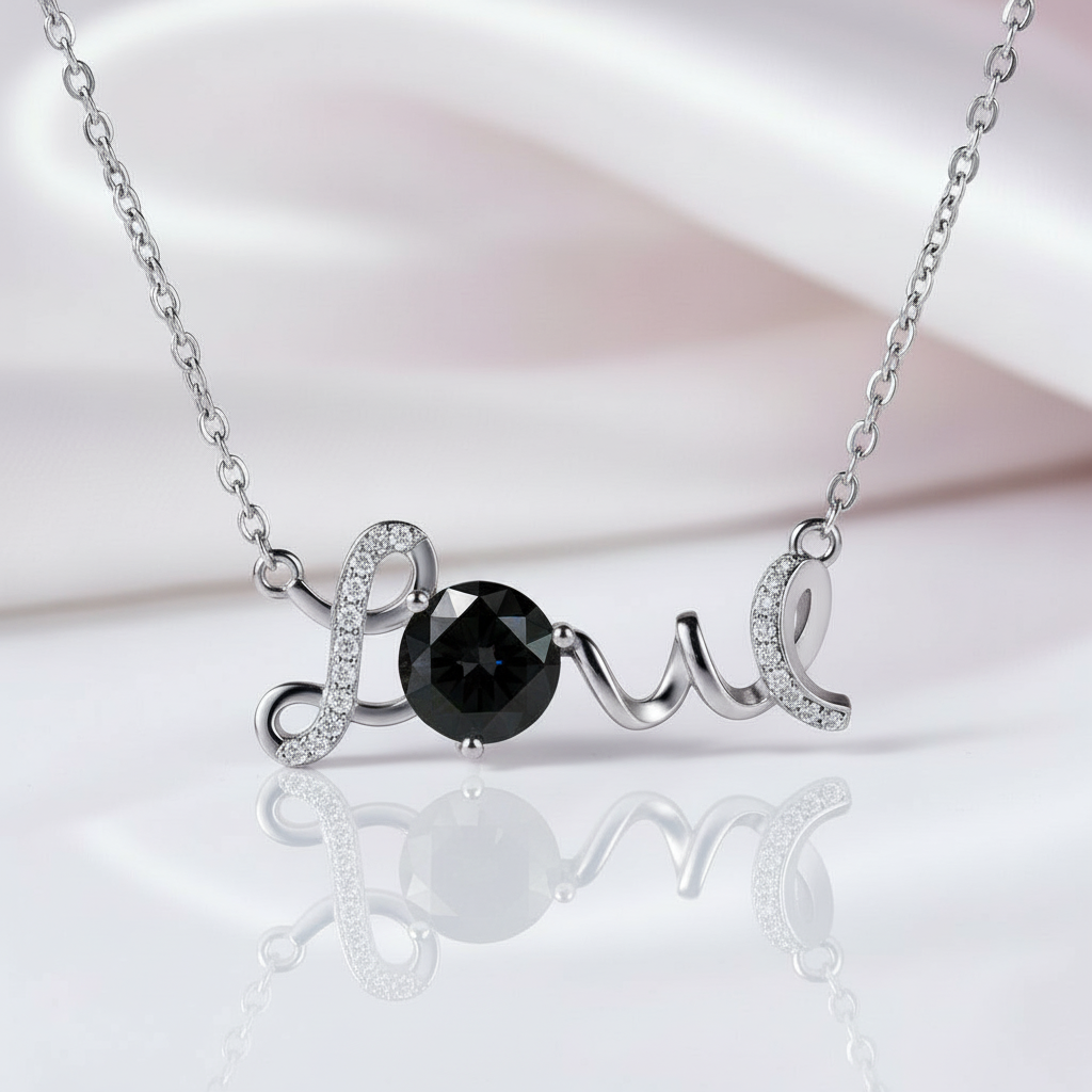 This 1.0 carat round-cut Certified Moissanite necklace is studded with a Love Design set in classic prong settings. Its celebrity-inspired design strikes the perfect balance between cute and elegant. Complete your look with this timeless necklace.