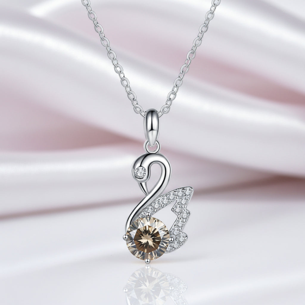 Look and feel like a celebrity with this beautiful 1.0 Ct Round Cut Certified Moissanite Swan Necklace. Its round Certified Moissanite stones and elegant Swan Design make it perfect for any occasion. Show off your impeccable style with this timeless necklace.