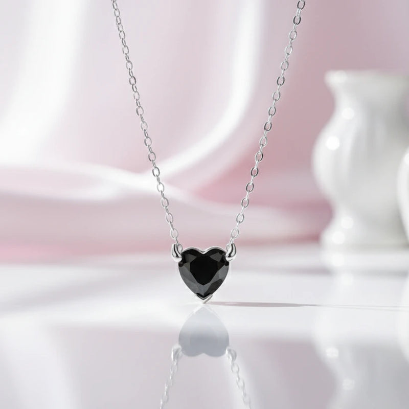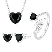 Discover the Cool Black Devil Heart Diamond Jewelry Set, crafted from 925 silver with 18k gold plating for lasting shine. Featuring a devil heart pendant and matching earrings with sparkling Diamond Alternative accents, this set adds elegant sparkle to any outfit. Enjoy luxurious style at an accessible price.