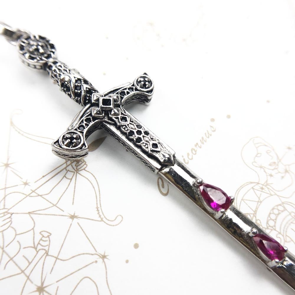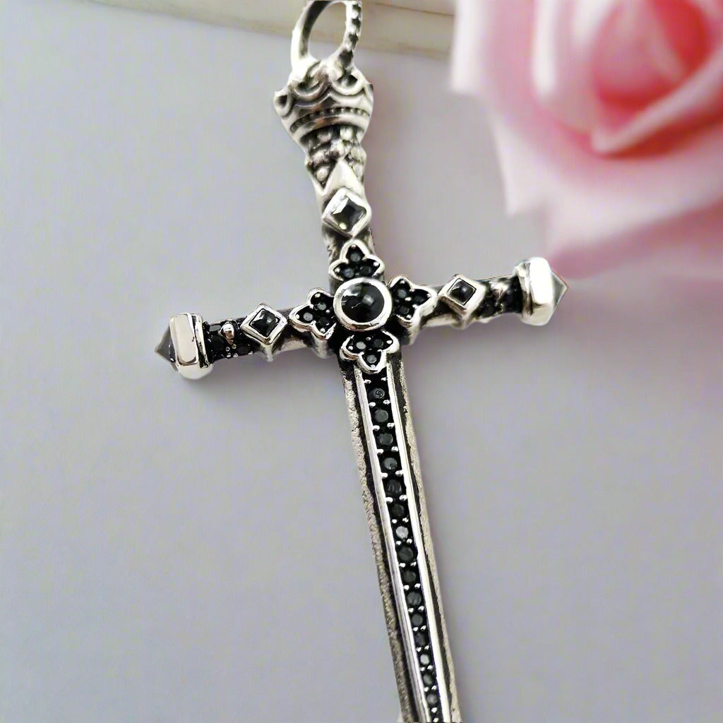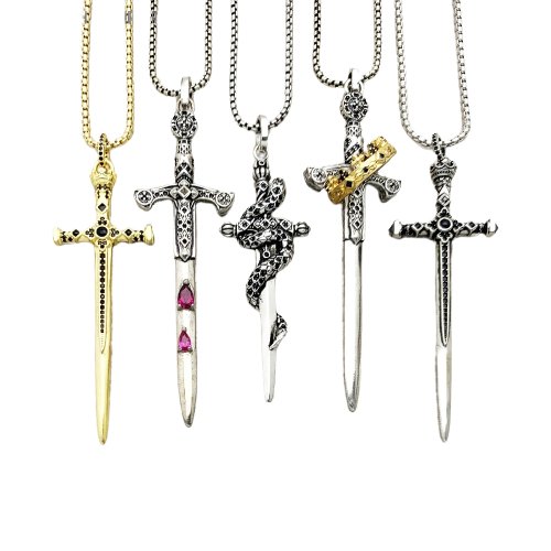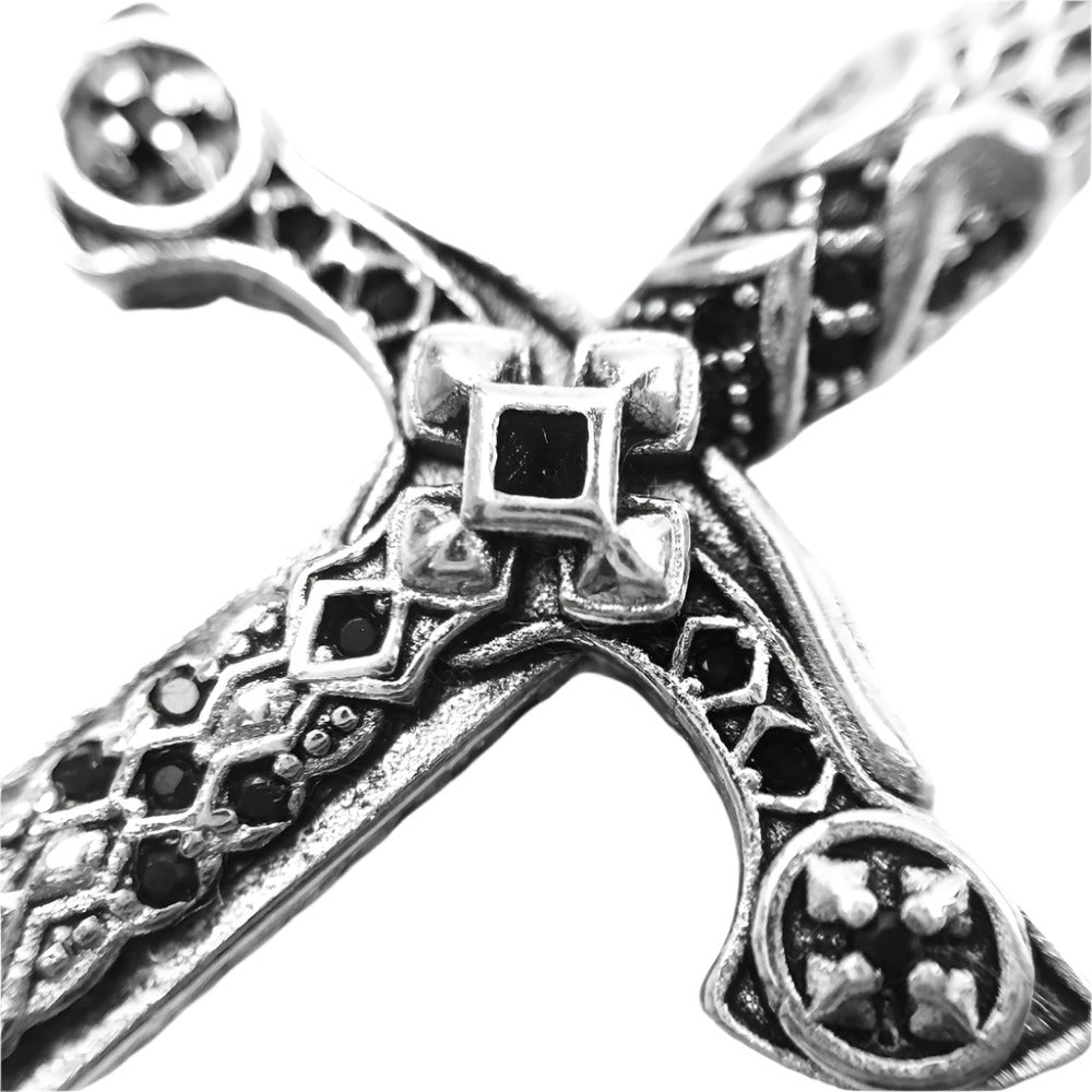 Introducing the ultimate in punk fashion - the new European Style Gothic Sword Link Chain Necklace from Black Diamonds New York. Crafted from the highest-quality 925 sterling silver and accented with the sparkle of diamonds, this Gothic-inspired accessory is uniquely designed with a gothic sword, crown, skull, and serpent design that will give you a bold, yet affordable look. Rock the streets in style with a piece from Black Diamonds New York.