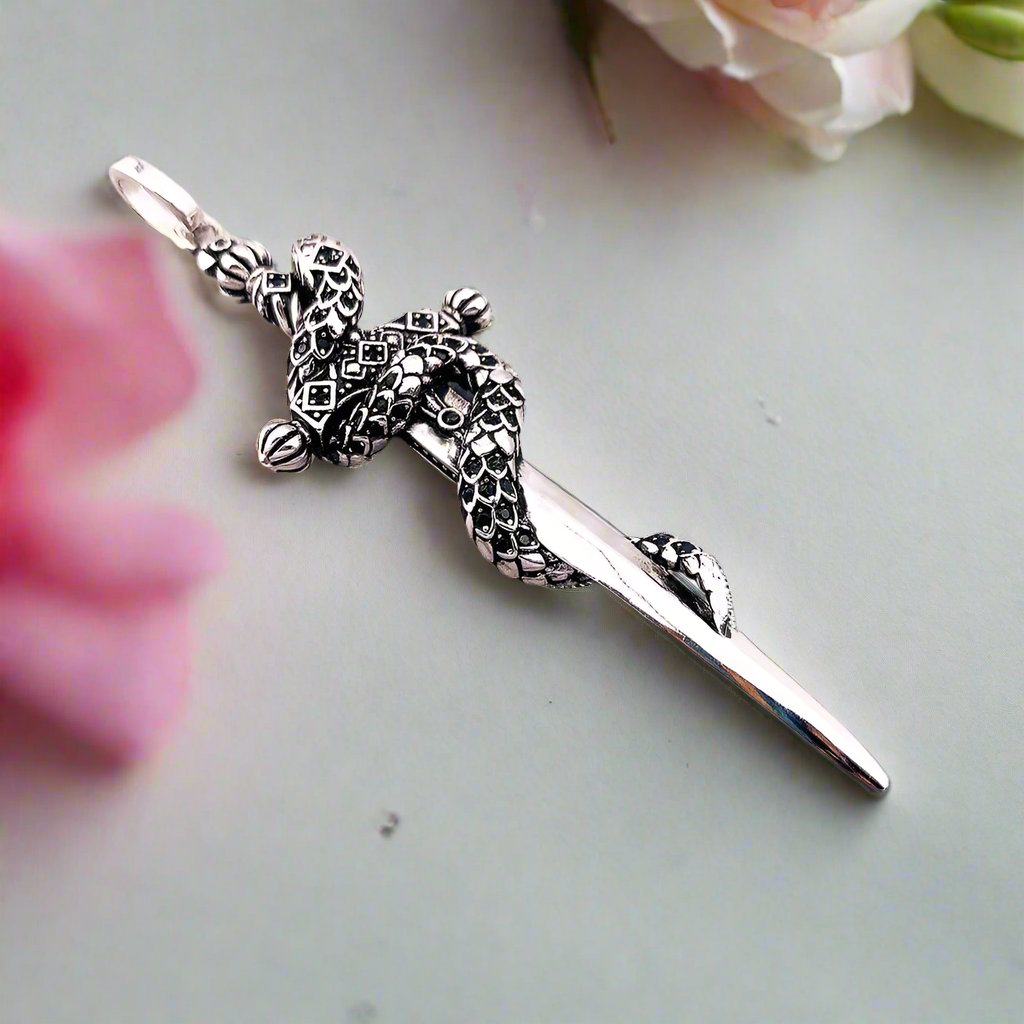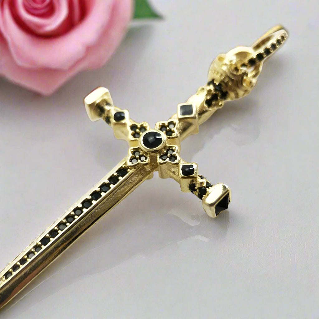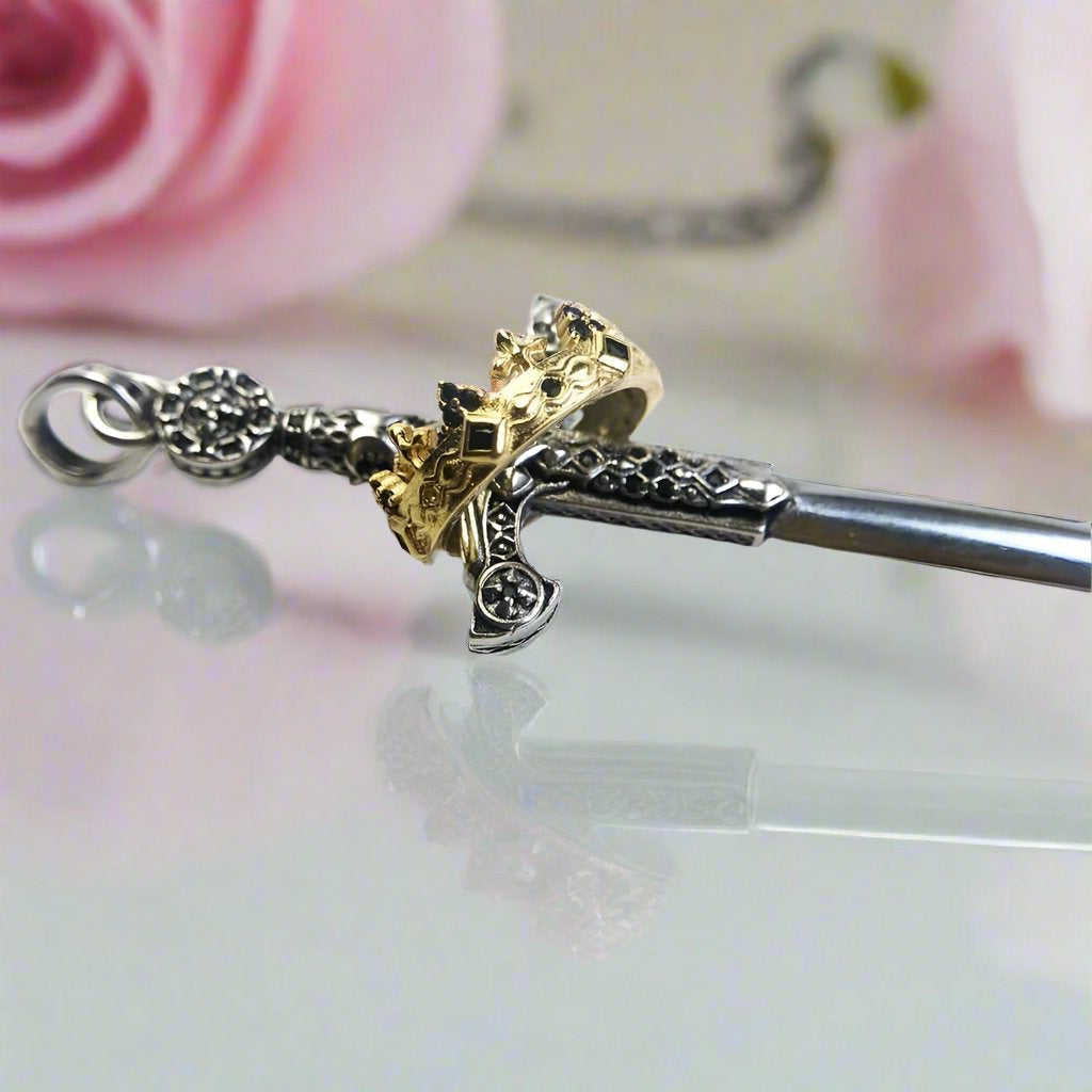 Introducing the ultimate in punk fashion - the new European Style Gothic Sword Link Chain Necklace from Black Diamonds New York. Crafted from the highest-quality 925 sterling silver and accented with the sparkle of diamonds, this Gothic-inspired accessory is uniquely designed with a gothic sword, crown, skull, and serpent design that will give you a bold, yet affordable look. Rock the streets in style with a piece from Black Diamonds New York.