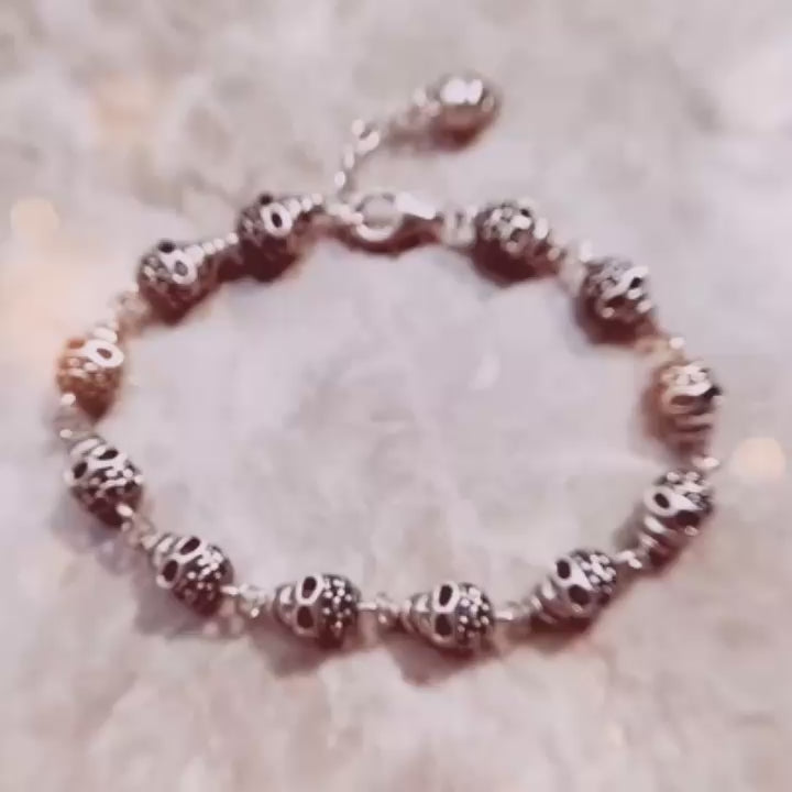 Gothic Skull Pave Link Chain Bracelet