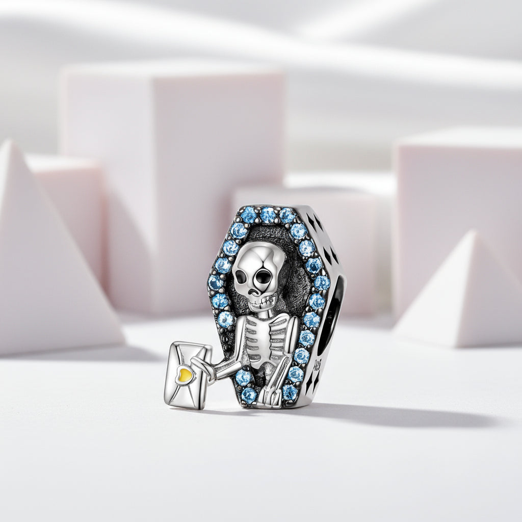 Crafted from high-quality 925 sterling silver and adorned with sparkling created diamonds, these unique beads feature an irregular shape. Elevate your Halloween charm bracelet with the Skeleton Family Charm Series—a must-have for any passionate collector.