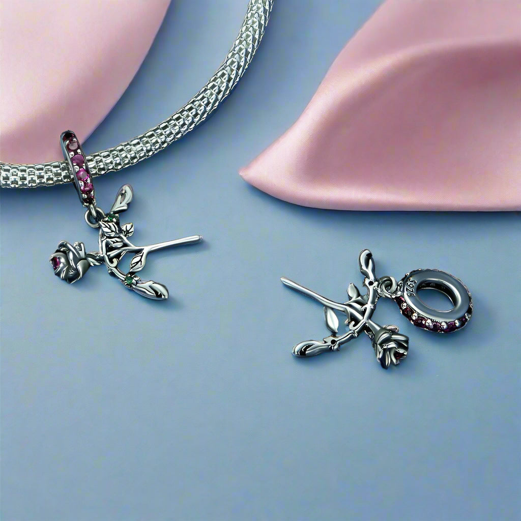 If you love the bold look of gothic punk fashion, then this stylish Skull and Lady Rose Arrow Charm from Black Diamonds New York is a must-have accessory for your collection! Made from sturdy S925 silver with enamel processing and detailed with a pave setting of Diamond Alternative and oxidized silver, this chic charm weighs 2.8g and measures 1.2*1.2cm. It incorporates an eye-catching design that showcases a heart with bones and punk roses in arrow design, for a unique, adventurous look. Add this little beauty to your favorite bracelet and add the finishing touch to your unique style.