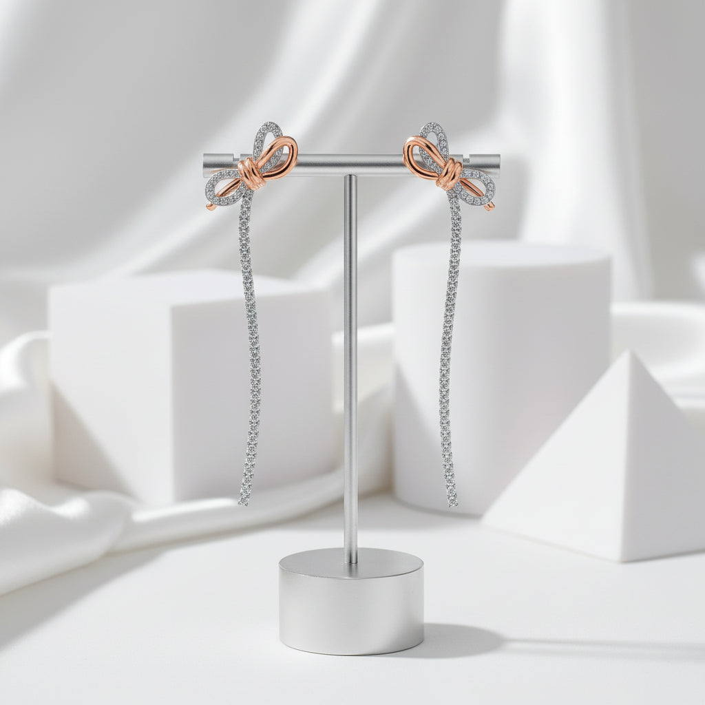 Round Diamond Bow Tassel Temperamental Long Earrings