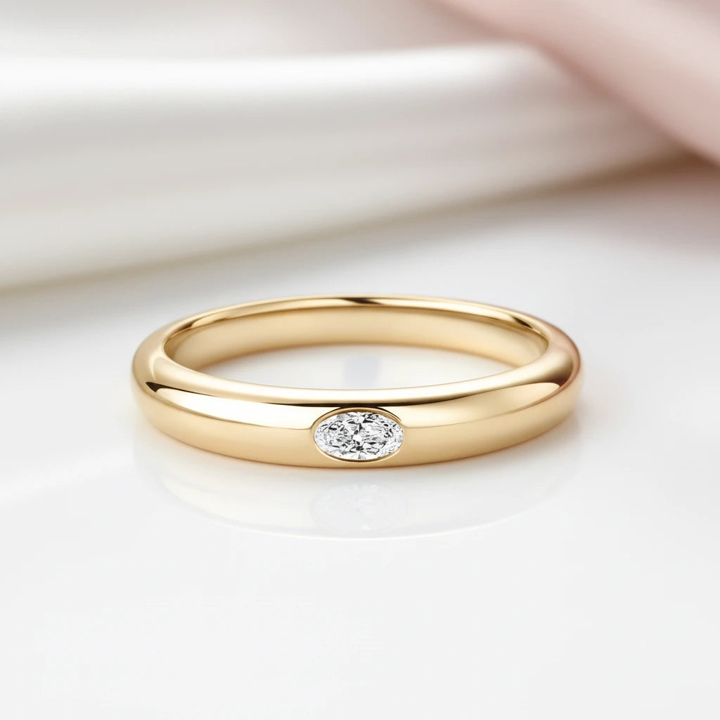 0.1 Ct Oval Cut Diamond Unisex Wedding Band