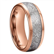 8mm Dome Polished Tungsten Wedding Band with Meteorite Inlay