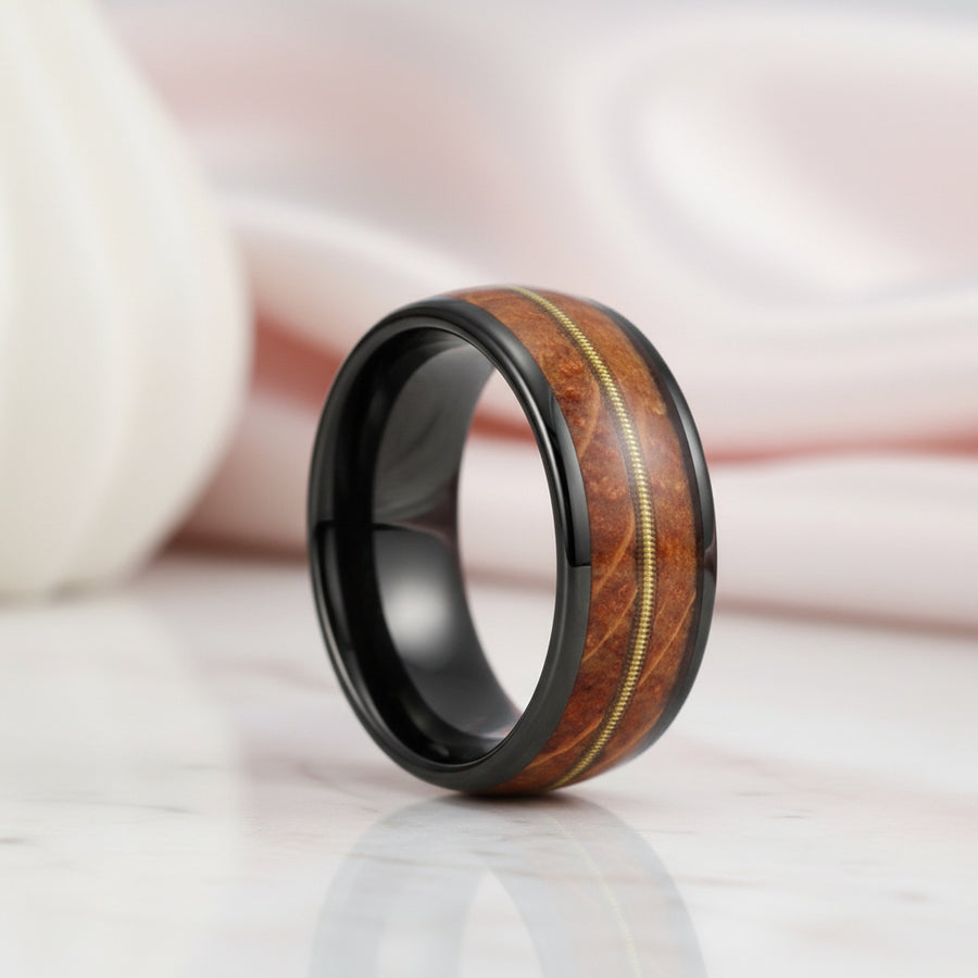8mm Tungsten Wood & Opal Men's Wedding Band