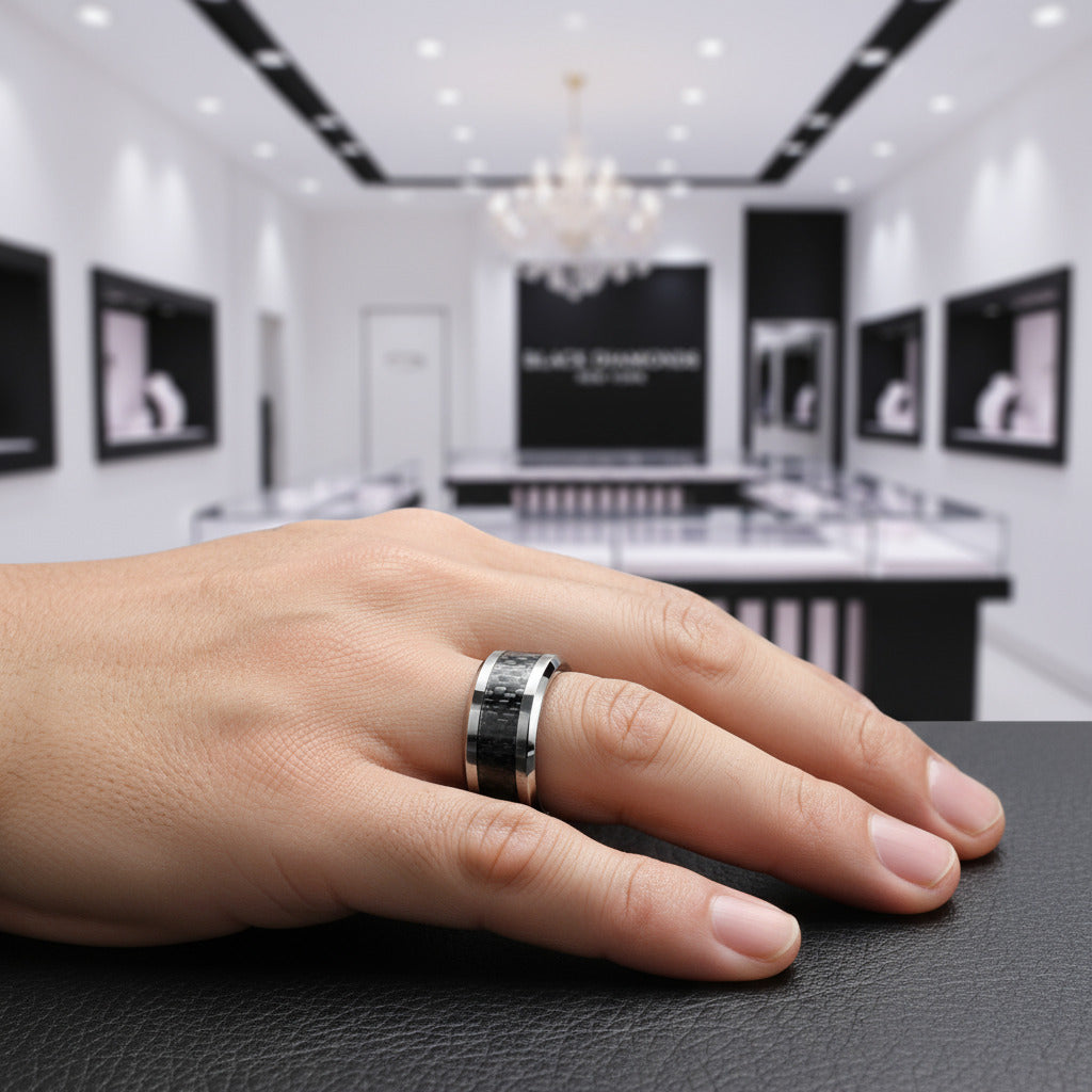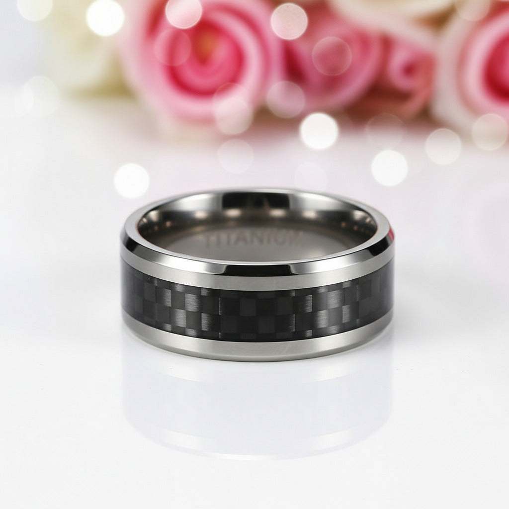 Crafted from premium, ethically sourced materials, this Beveled Black Carbon Titanium Men's Wedding Band is designed to endure a lifetime. Ditch the dull and overpriced rings—choose a band that combines style and lasting quality.