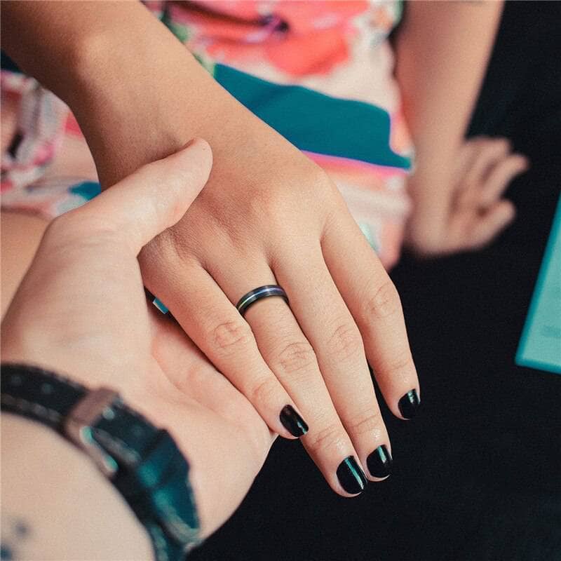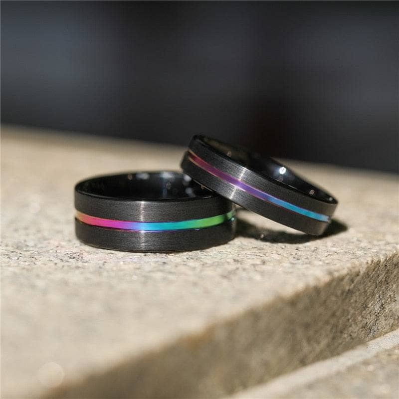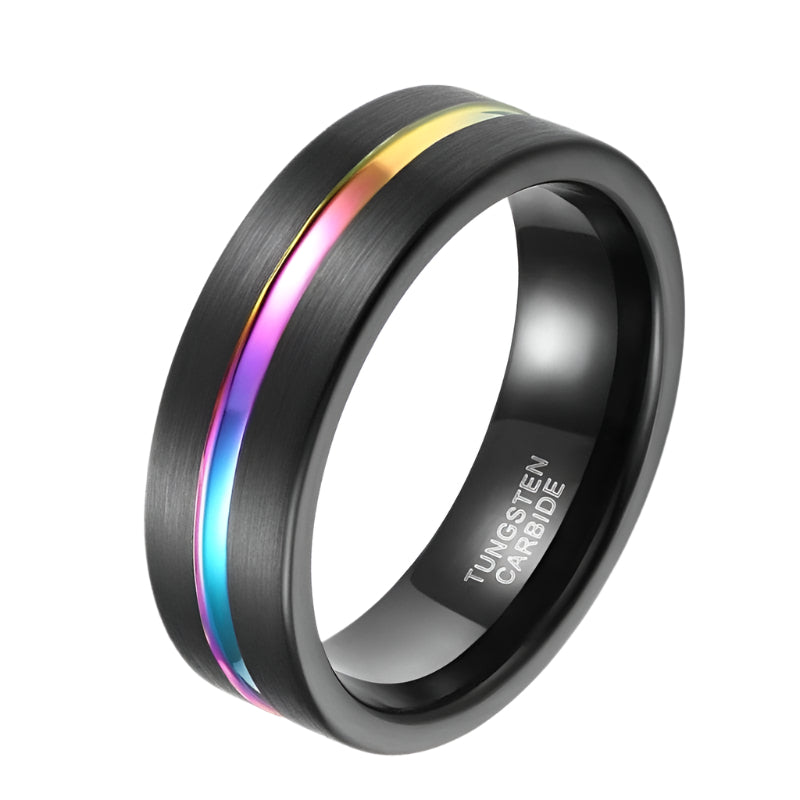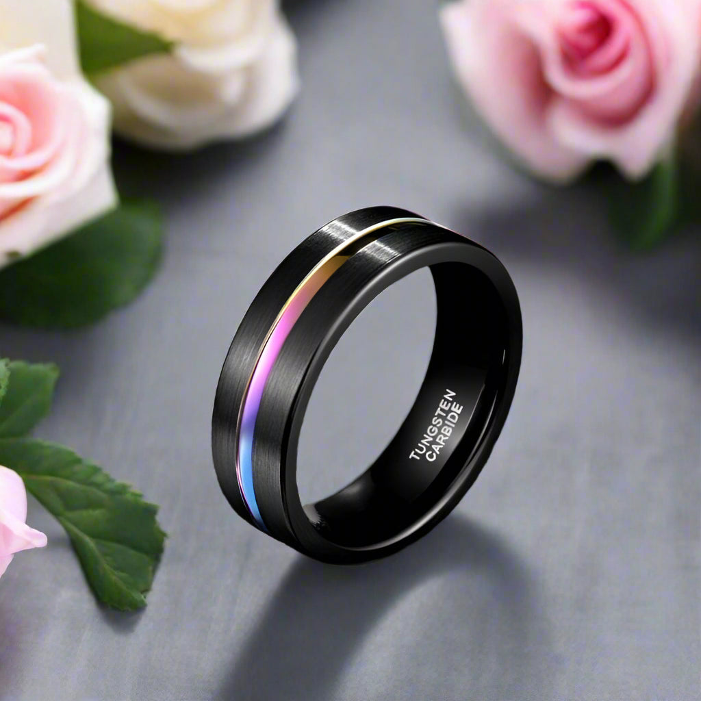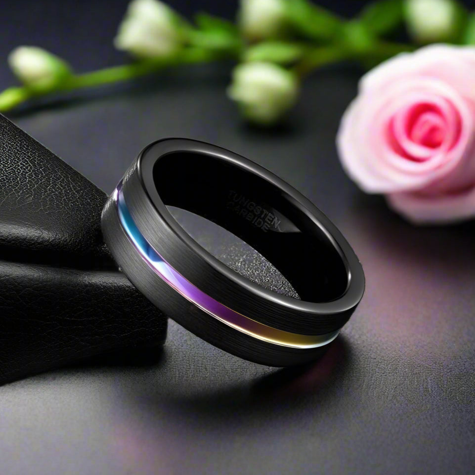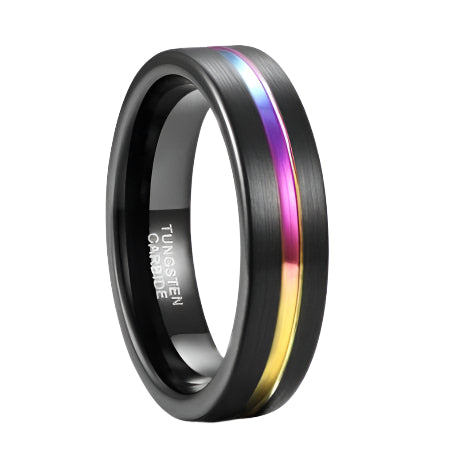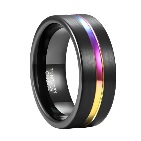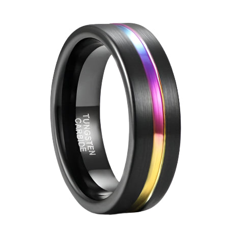 Black Tungsten Carbide Wedding Ring with Rainbow Line