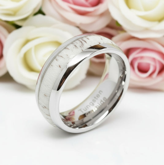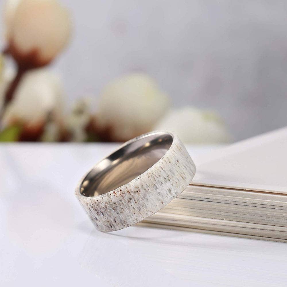 Experience a wedding band like no other with our Deer Antler Titanium Band! Say goodbye to boring and overpriced bands and embrace a unique and meaningful symbol of your love.