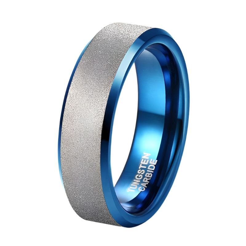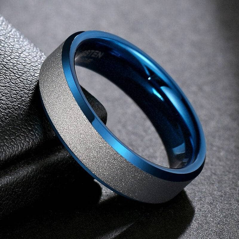 Frosted Blue & Silver Tungsten Carbide Wedding Band