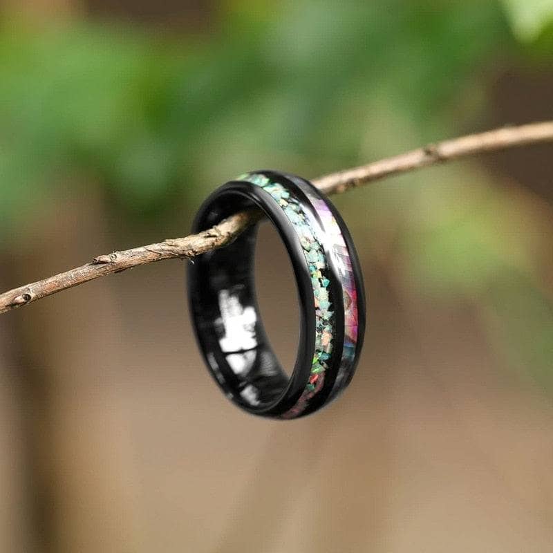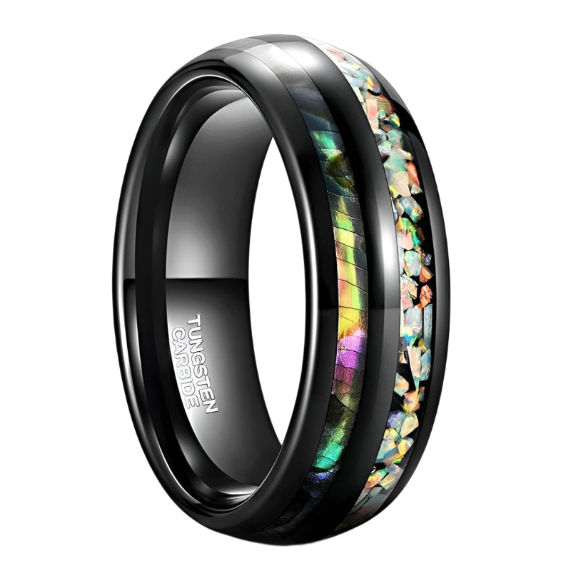 Crafted from premium, ethically sourced materials, this Galaxy Opal & Abalone Shell Men's Tungsten Wedding Band is designed to endure a lifetime. Ditch the dull, overpriced rings and choose a band that's truly unique.