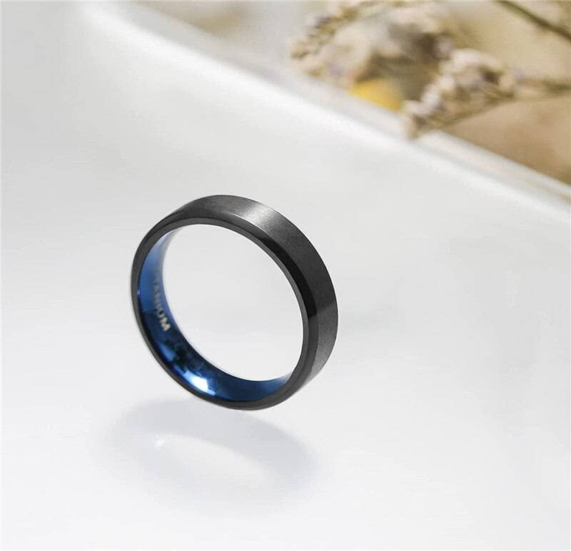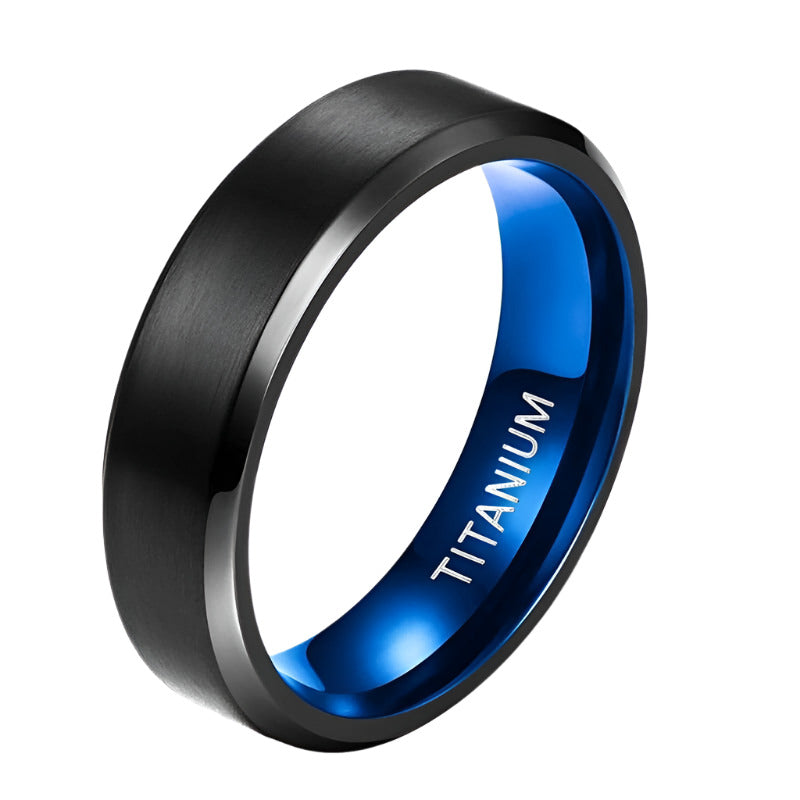 Men's 6mm Brushed Black & Blue Titanium Wedding Band