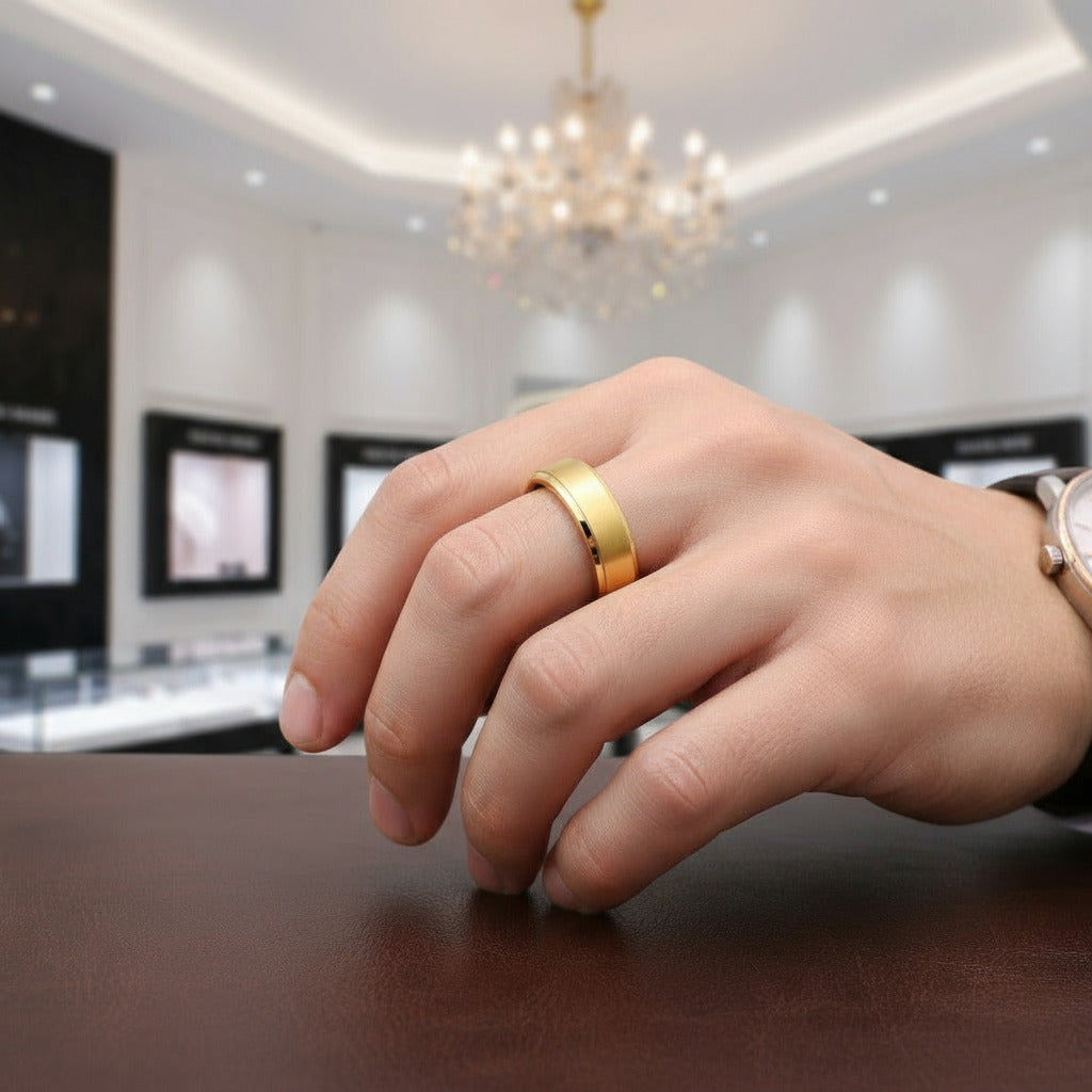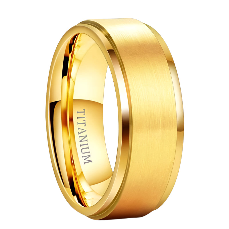Men's Brushed Yellow Gold Titanium Wedding Band
