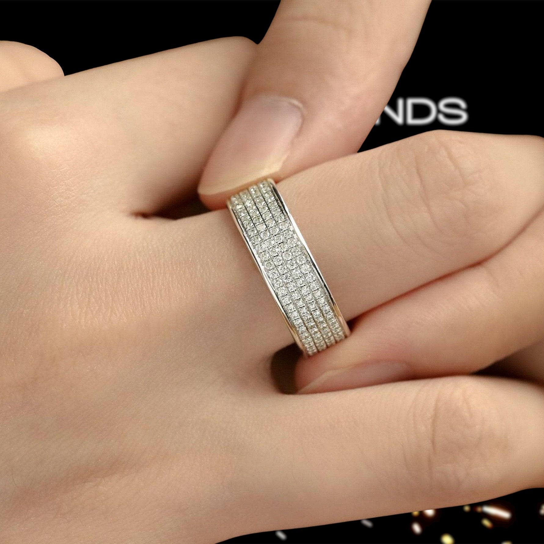 Round Cut Diamond Eternity Mens Wedding Band
