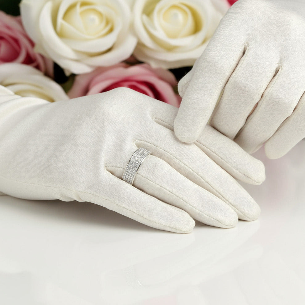925 STERLING SILVER: Our silver pieces are electroplated for a beautiful finish, but this finish may wear off over time with normal use. Each piece is electroplated with rhodium or finished with an e-coating, providing a layer of protection against everyday wear and tear. These finishes not only enhance the overall appearance but also provide added durability. However, it is important to note that these finishes are temporary and require proper care to ensure their longevity. For engagement and wedding rings, consider purchasing silver without colored plating like rose gold, yellow gold, or black rhodium; these finishes fade faster compared to white gold overlay. Note that our 925+white gold is a shortcut for 925 Sterling Silver with gold plating.