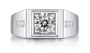 Exquisitely crafted to withstand the test of time, this Round Diamond Luxury Noble Engagement Ring for Men boasts impeccable quality and ethically-sourced materials. Made with a silver and platinum base, plated with brilliant white gold, and adorned with a sparkling created diamond, this piece exudes elegance and sophistication.