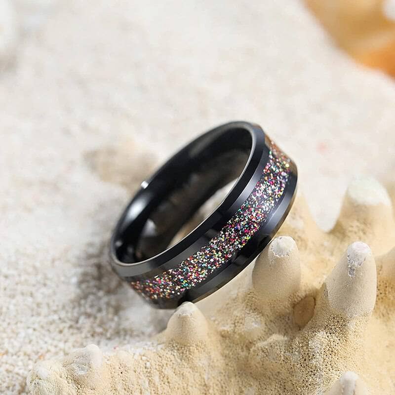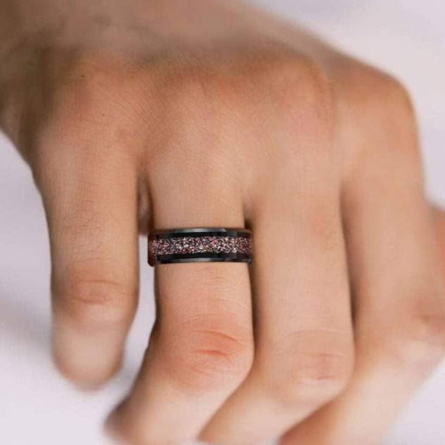 This 8mm tungsten wedding band features a unique sandstone inlay and is made from high-quality, ethically sourced materials. Designed for lasting durability and elegant style, it offers a distinctive and timeless symbol of commitment without the high price.
