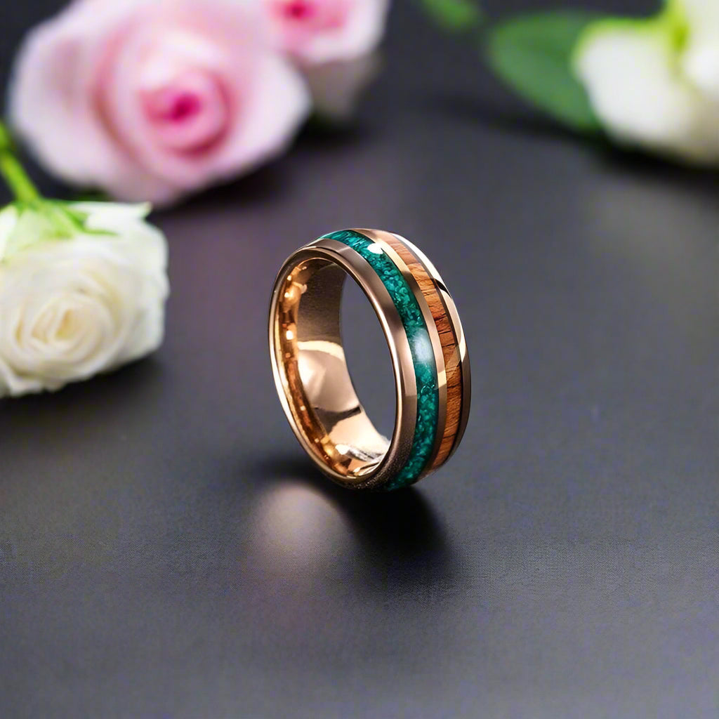 This Turquoise and Wood Beveled Men's Tungsten Carbide Wedding Band is crafted from high-quality, ethically sourced materials designed for lasting durability. Experience a refined alternative to conventional, overpriced wedding bands.