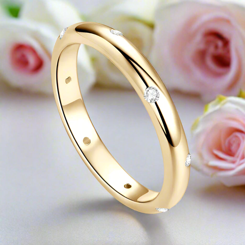 Unisex Wedding Band with Round Diamond Inlay