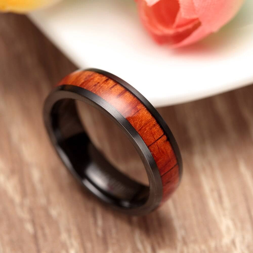 Wooden Black Titanium Domed Wedding Band