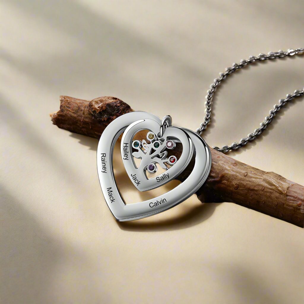 Custom Engraved Name Tree of Life Necklace with 6 Birthstones
