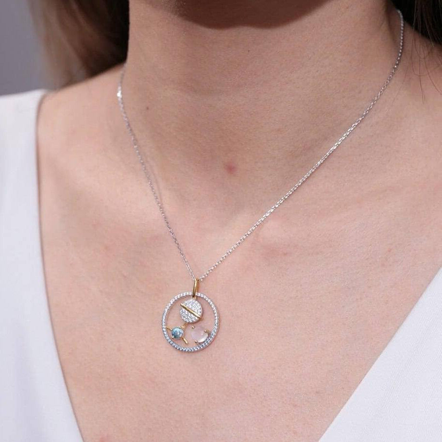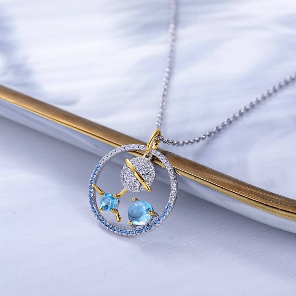 Planet Swiss Blue Topaz Moonstone Necklace
