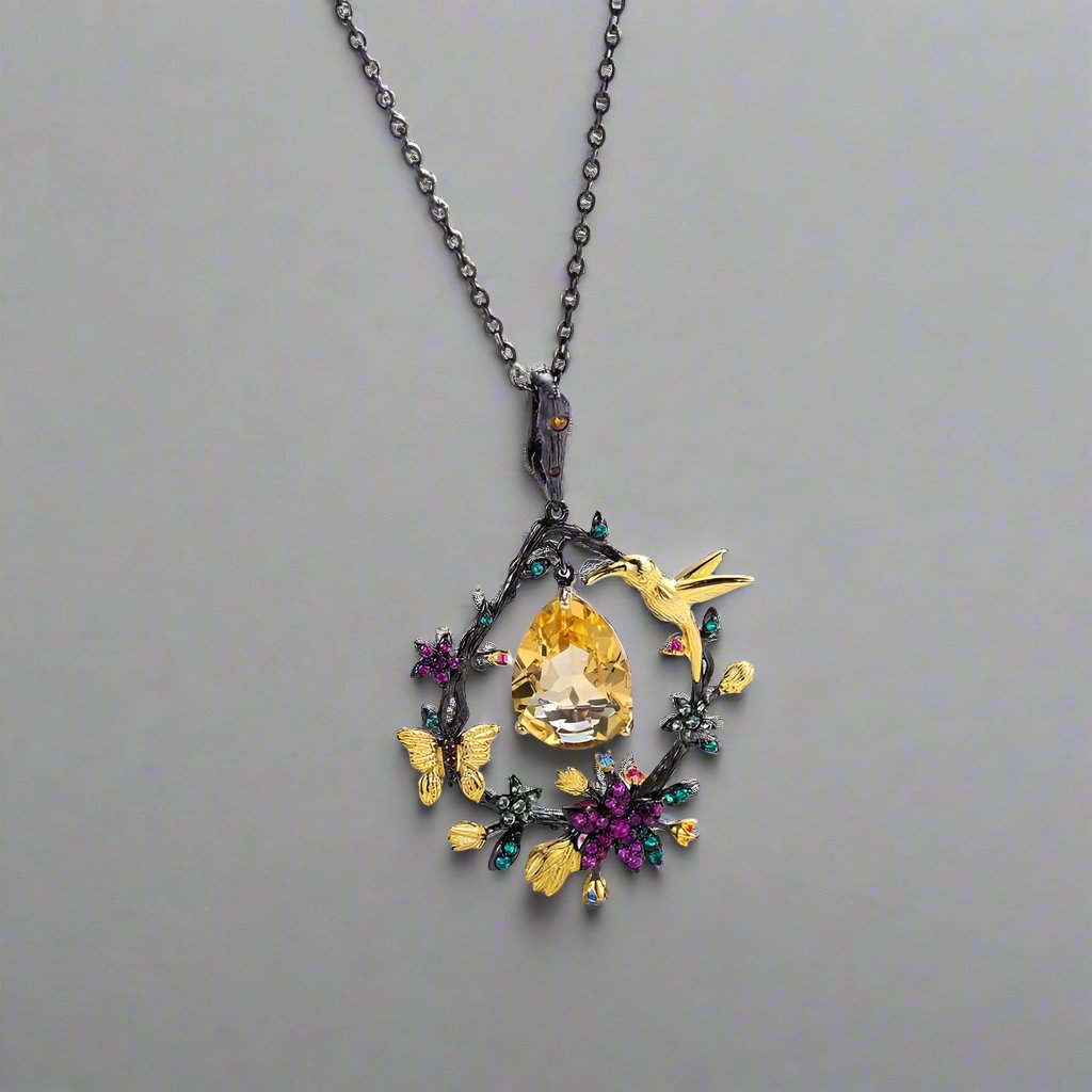 Secret Garden Natural Gemstone Dangle Pendant Necklace