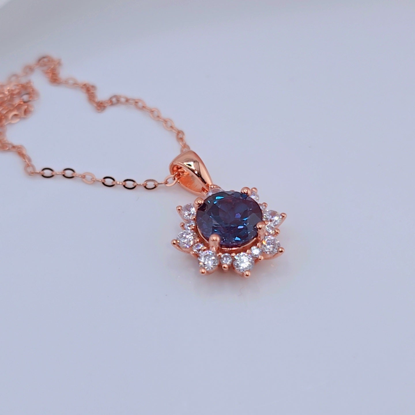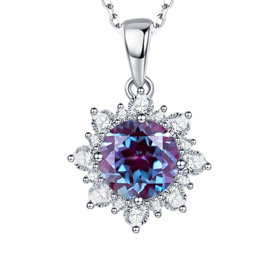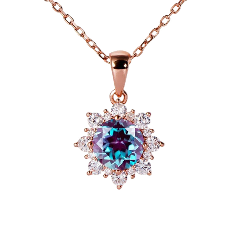 Indulge in the beauty of our 2.0 Ct Round Alexandrite Pendant Necklace by Black Diamonds New York. This mesmerizing piece features a captivating color-changing Alexandrite stone in a round cut that is sure to catch the light from every angle. Made with top-notch materials, such as 925 silver dipped in 18k gold five times, this necklace offers both quality and affordability. Treat yourself to a stunning accessory that will instantly elevate your look.