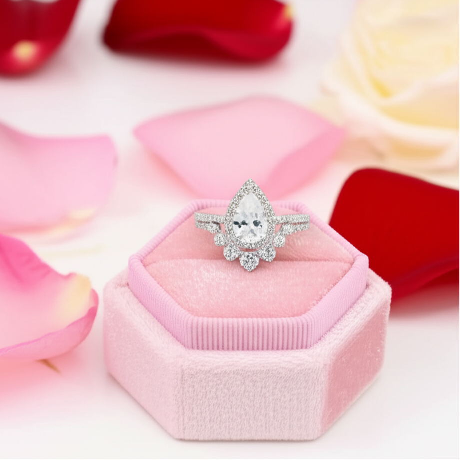 2.7Ct Halo Pear Cut Diamond Engagement Ring Set