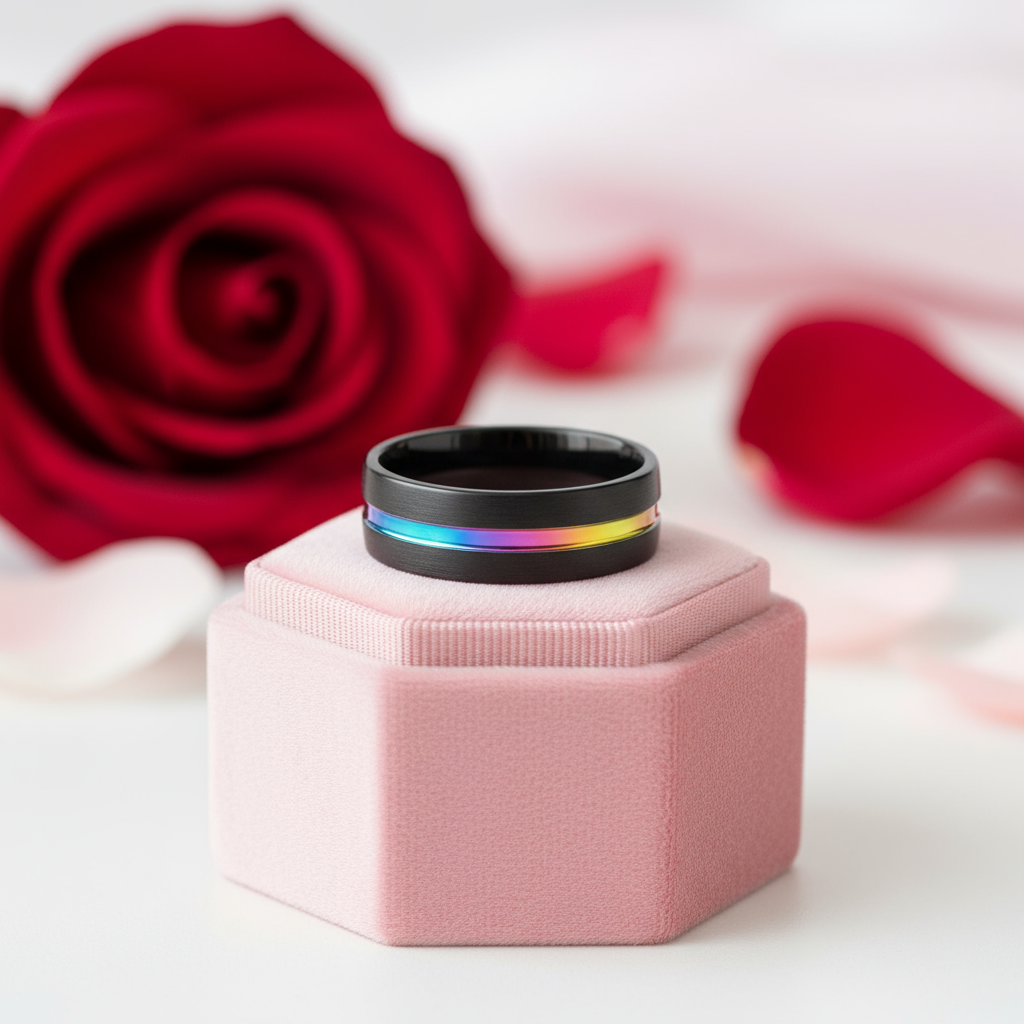 Black Tungsten Carbide Wedding Ring with Rainbow Line