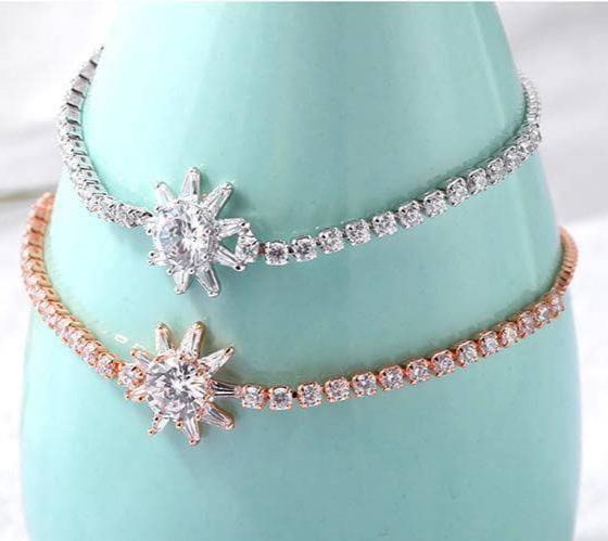 Experience the ultimate in luxury with our Diamond Sun-shaped Fashionable Simple Bracelet. Crafted with the highest quality materials of silver and platinum, this bracelet features stunning rose gold and white gold plating. The centerpiece of the bracelet is a dazzling created diamond, adding an unmatched level of elegance and sophistication to any look. Elevate your style with our Diamond Sun-shaped bracelet and make a statement that will leave a lasting impression.