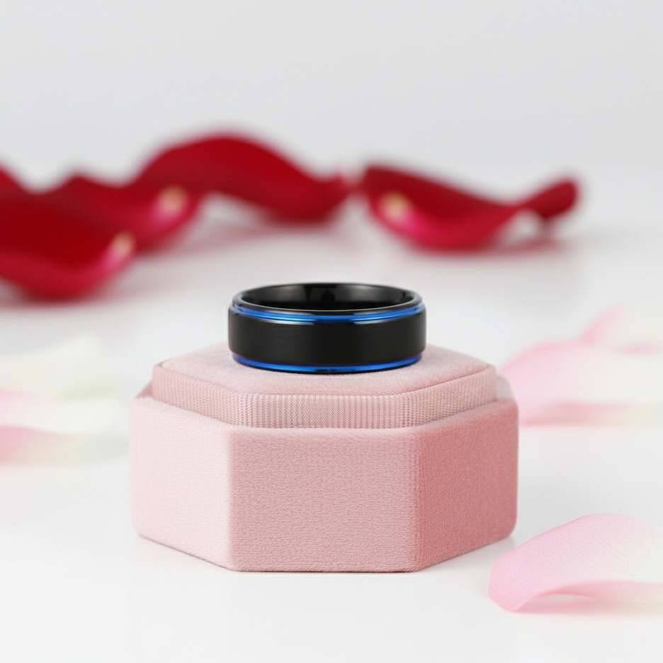 This Men's Tungsten 8mm Black and Blue Line Wedding Band is expertly handcrafted to deliver outstanding brilliance, shining with the radiance of a diamond. Designed to symbolize your commitment, it’s the perfect ring for you, your beloved, and the one who cherishes you.