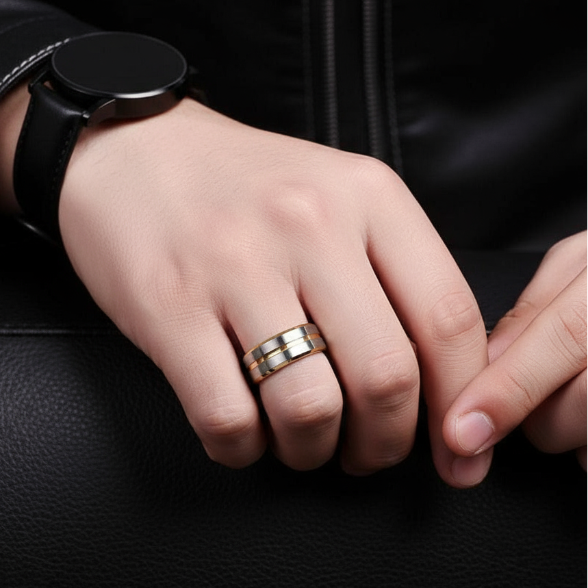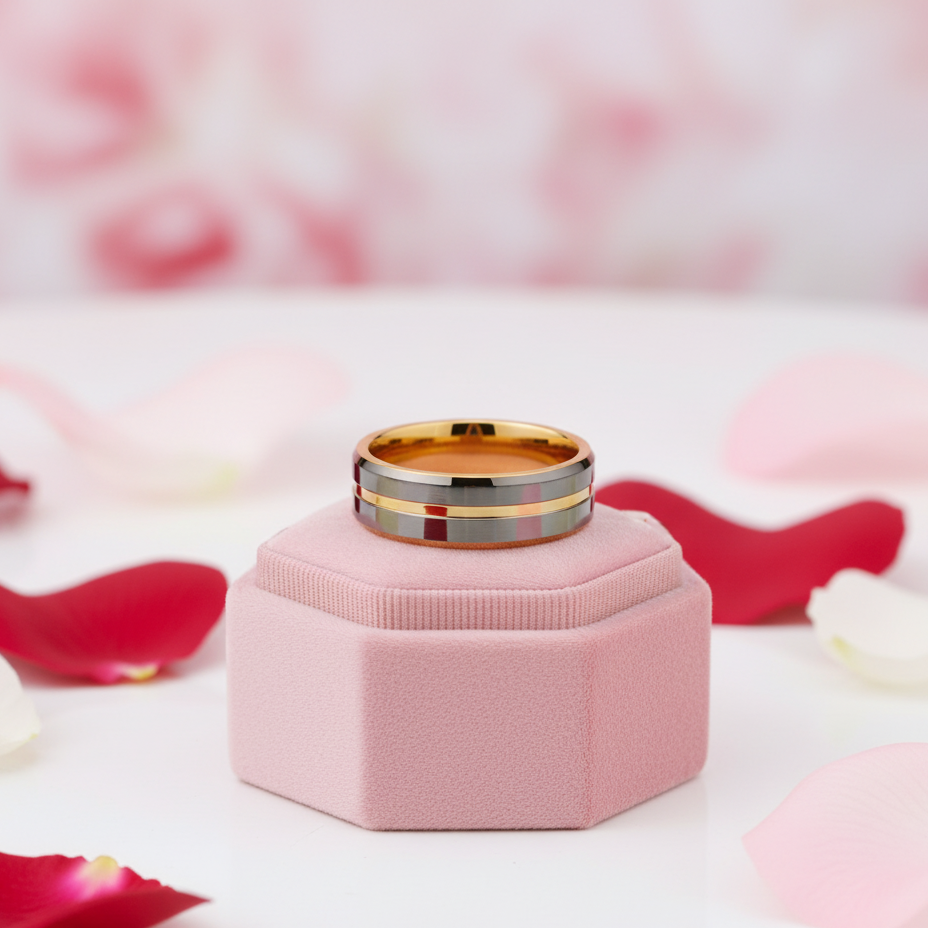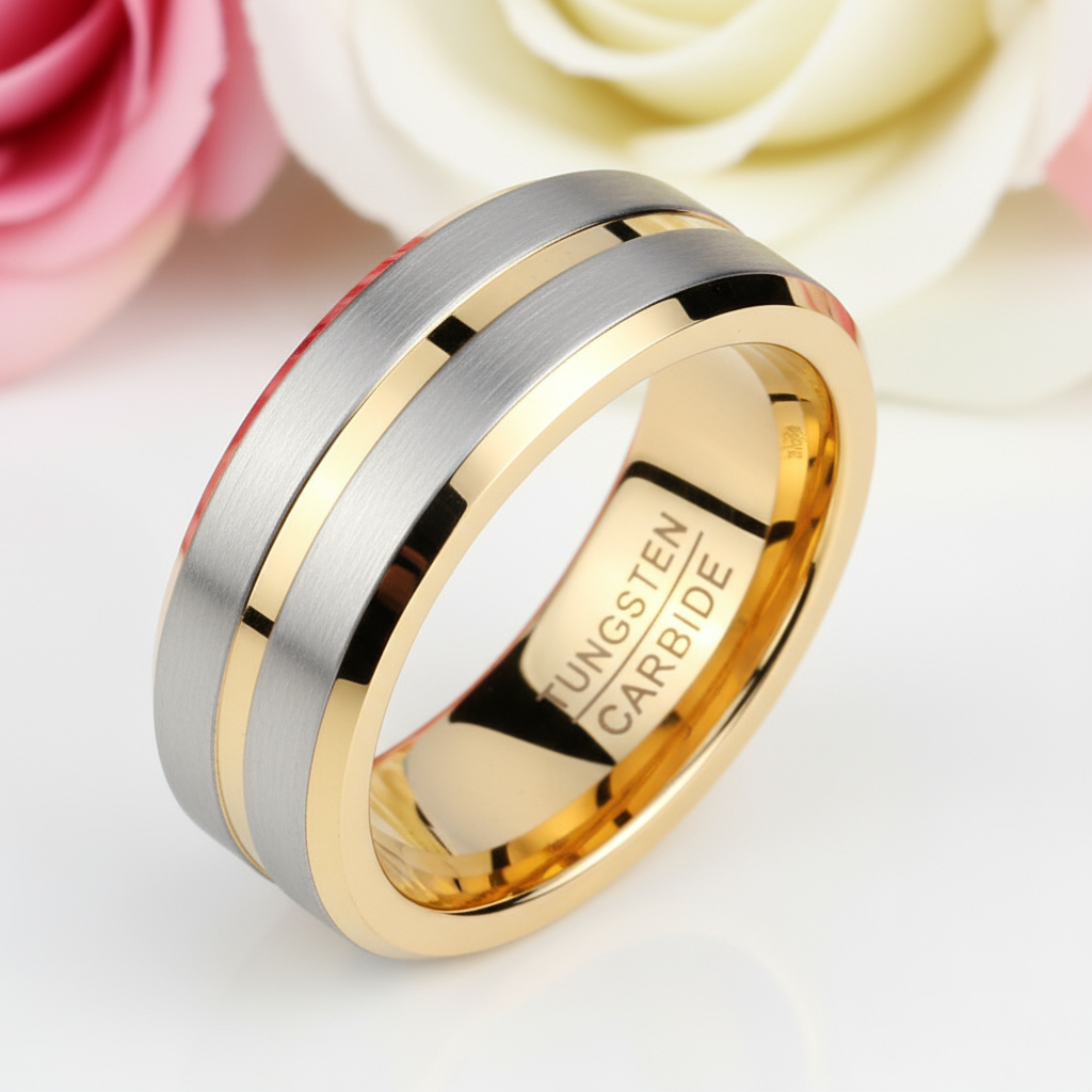 Crafted with precision, this 8mm Men's Wedding Band in Tungsten Carbide features a stunning golden gray finish that shines brilliantly like a diamond. Designed to symbolize your commitment, it’s the perfect ring for you, your partner, and the love you share.