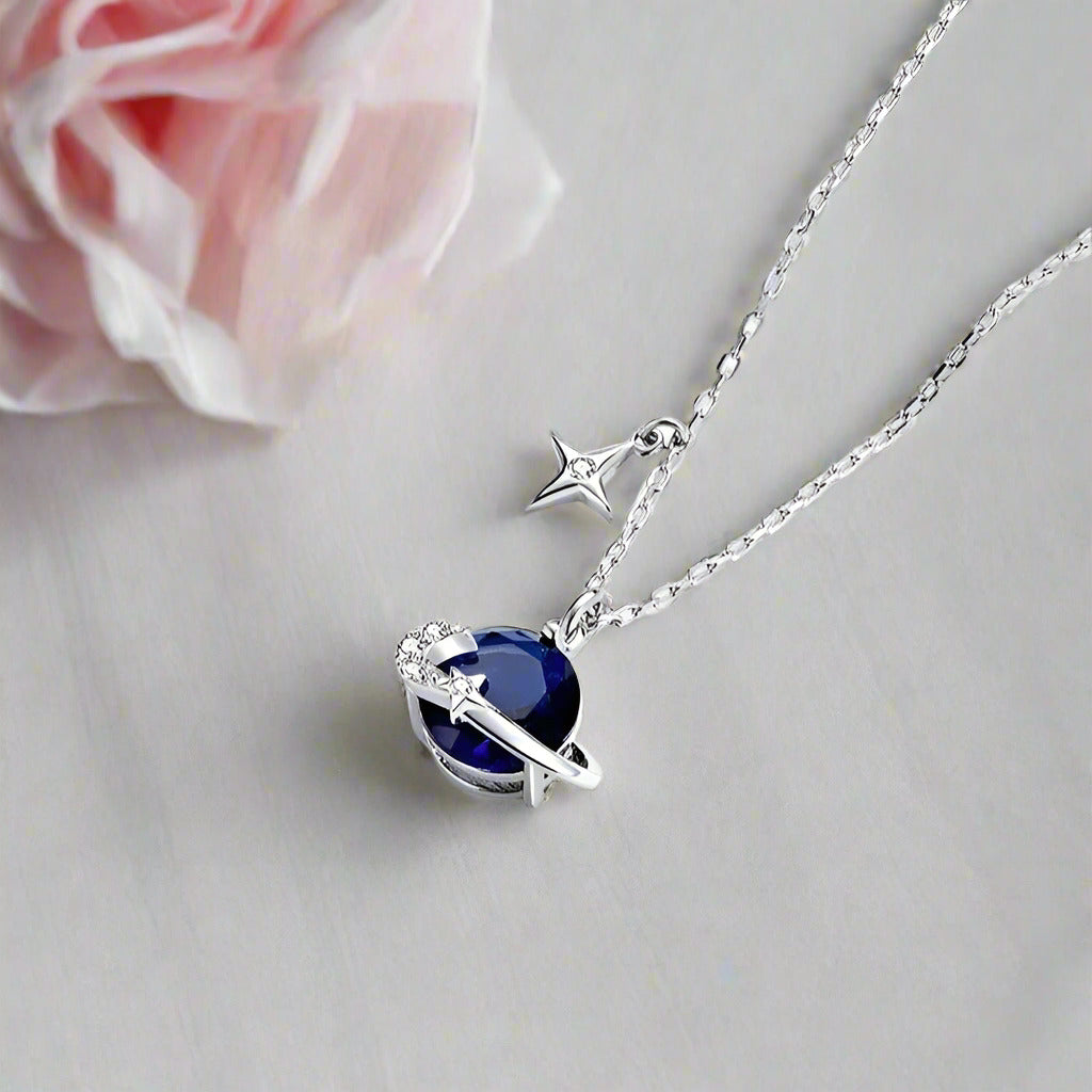 Delicately crafted from 925 sterling silver, this Saturn and Star Pendant with Diamond Alternative Necklace by Black Diamonds New York is a stunning piece that effortlessly adds a touch of celestial charm to any outfit. The center stone shimmers with a pave setting, reflecting light in a mesmerizing way. With top-notch quality and a shiny finish, this necklace is both affordable and top of the line. Elevate your style with this affordable, yet elegant necklace that is sure to turn heads wherever you go.