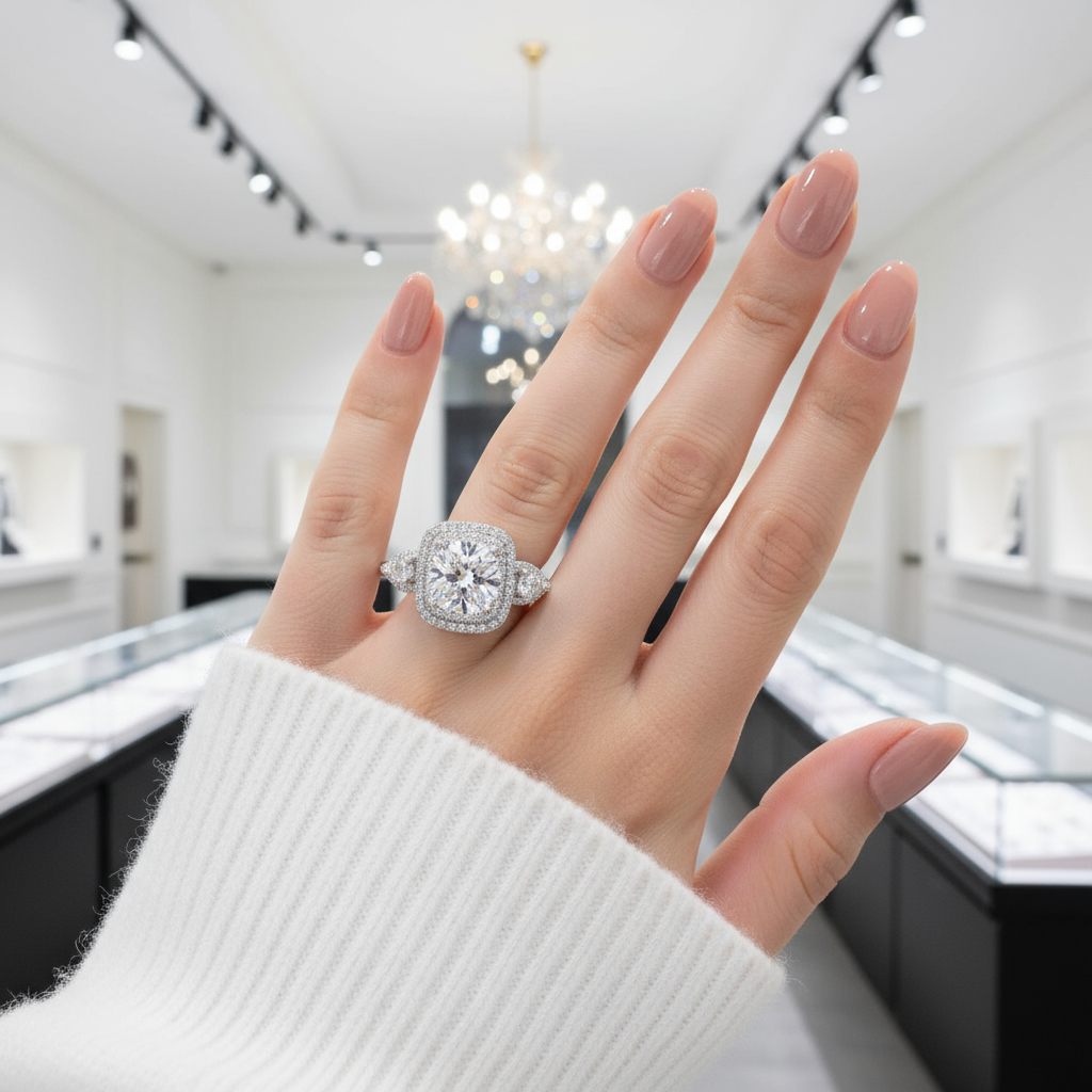 Stone Comparison: Sits brilliantly between Certified Moissanite and CVD Lab-grown Diamonds.