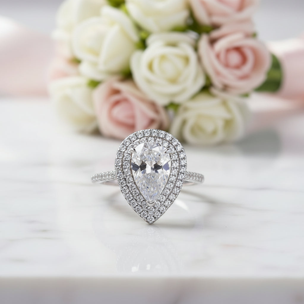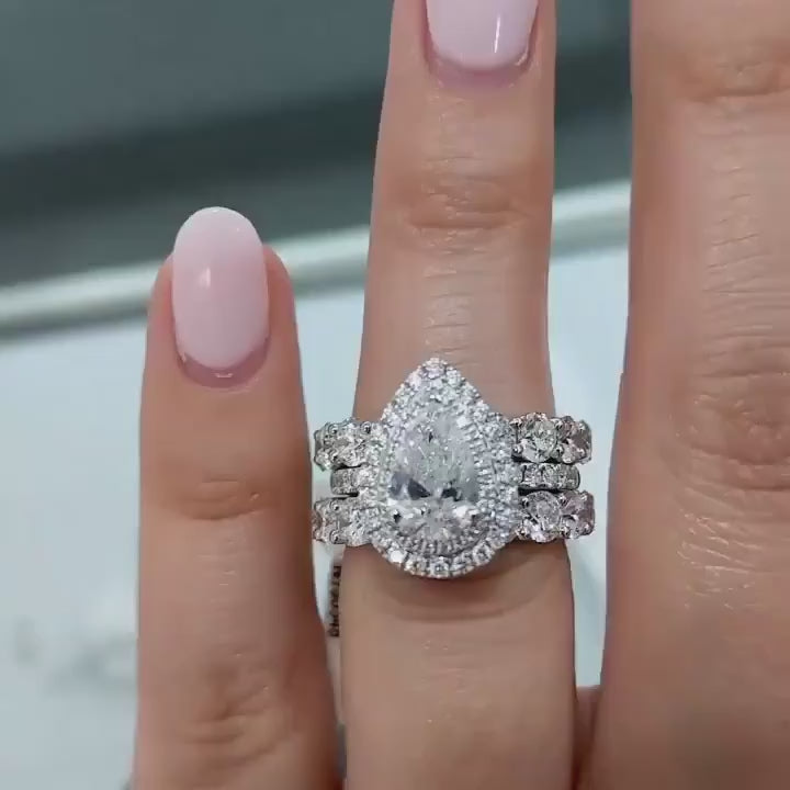 Eternity Double Halo Pear Cut 3-Pieces Wedding Set