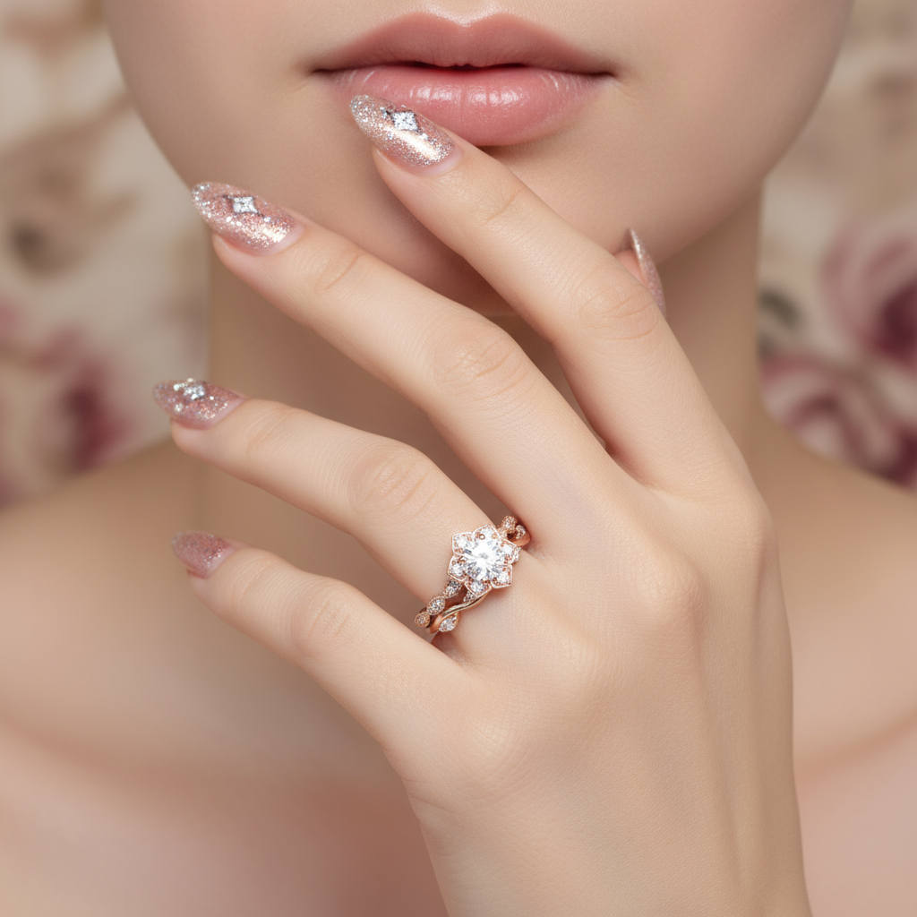 Flower 14k Rose Gold 0.5 Ct Round Cut Diamond Engagement Ring