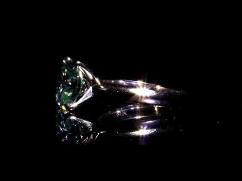 Treat your loved one to a truly unique and special gift with a dazzling rare blue green cushion cut moissanite ring, now available from Black Diamonds New York. Crafted from 14k white gold, this gorgeous and high-quality ring is sure to make a lasting impression on your special someone. A rare and breathtaking shade of blue green gives this ring a distinct look while the cushion cut sparkles exquisitely, making this piece a luxurious finish to any ensemble. With priceless style available at an affordable price, your recipient won't be able to take their eyes off this exquisite piece of jewelry.