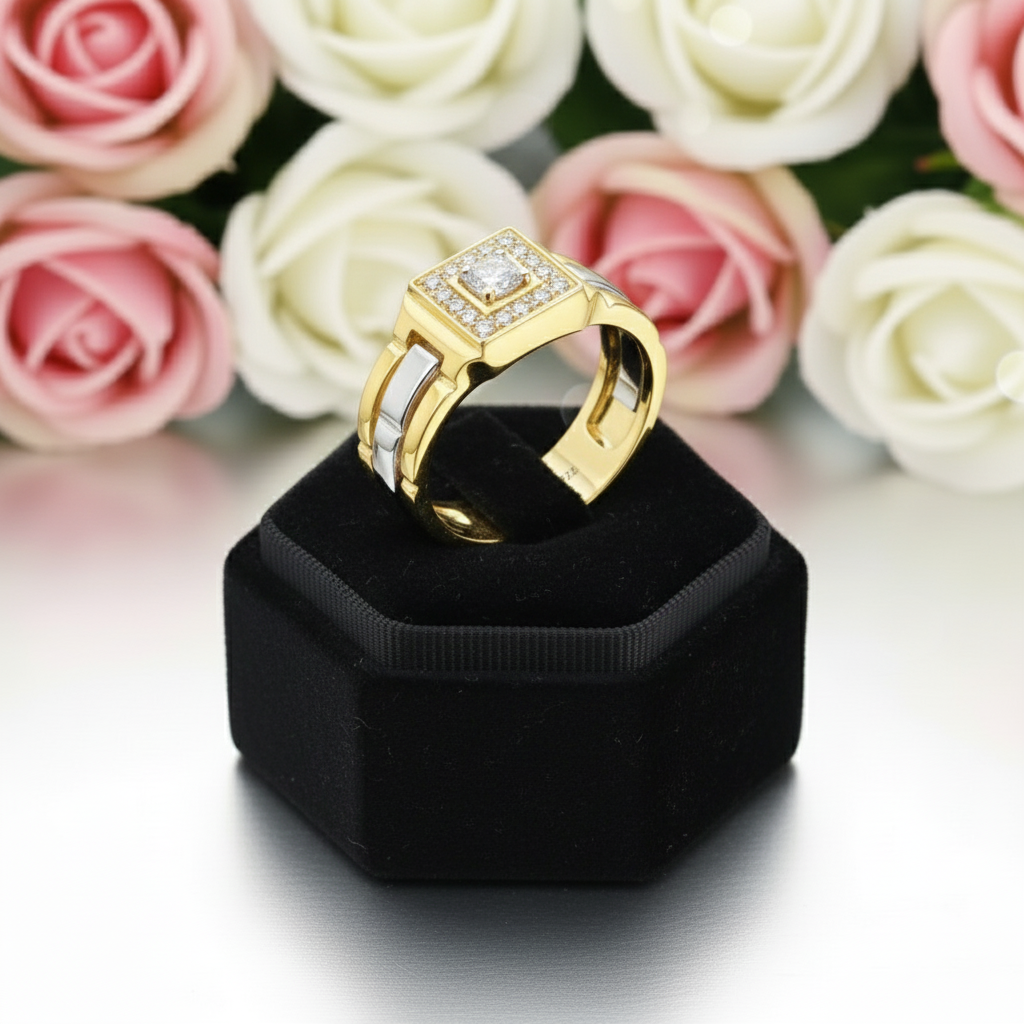 Discover the epitome of elegance and modernity with our Two Tone Round Cut Halo Men's Ring. A striking round-cut stone takes center stage, complemented by a dazzling halo of smaller stones, creating a mesmerizing visual effect. The two-tone design adds a subtle contrast, accentuating the brilliance of this delightful piece. Designed with simplicity in mind, the lightweight construction ensures comfortable wear throughout the day. Perfect for formal occasions or adding a touch of sophistication to everyday attire, this ring is a must-have for the modern gentleman who values timeless style with a contemporary twist.