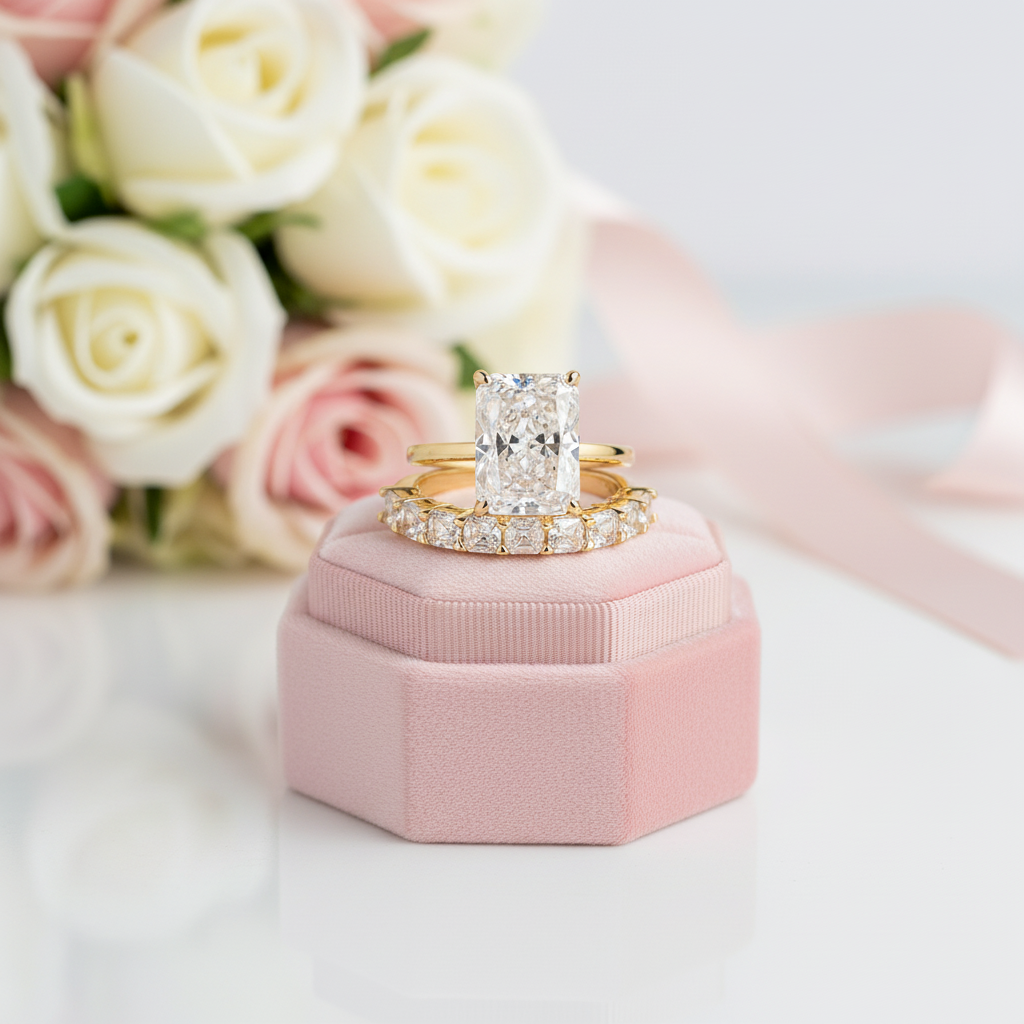5.0CT Radiant Cut Yellow Gold Ring Set
