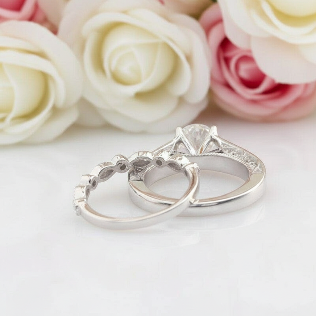 CERTIFIED MOISSANITE- stunning, near-colorless lab-grown gemstone (silicon carbide). Exhibits more fire (rainbow flashes) than diamonds. Hardness of 9.25 (Mohs scale), highly durable for daily wear. D-F color, VS1 Clarity, certified by GRA with a unique girdle code.