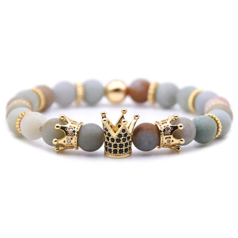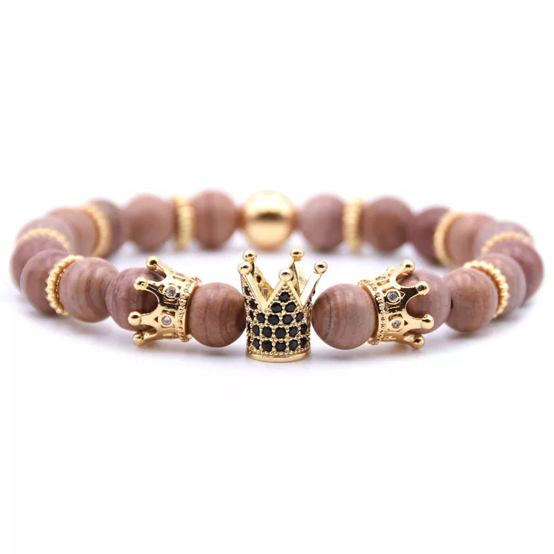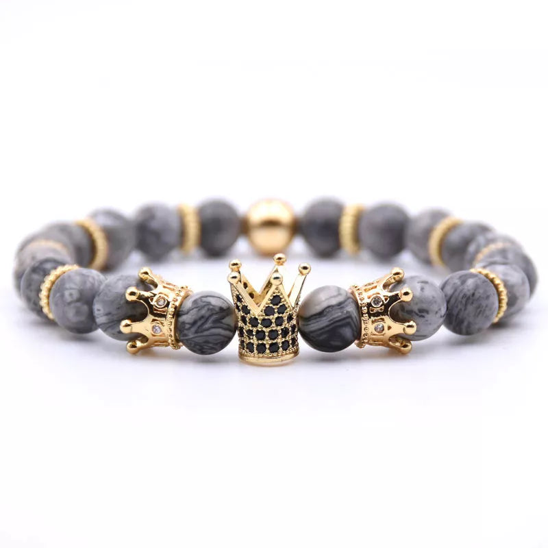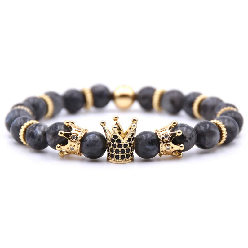 Indulge in the luxurious and captivating beauty of our Volcanic Stone Crown Bead Bracelet, featuring a stunning combination of titanium metal and round cut Diamond Alternatives. Elevate your style with this exquisite piece!