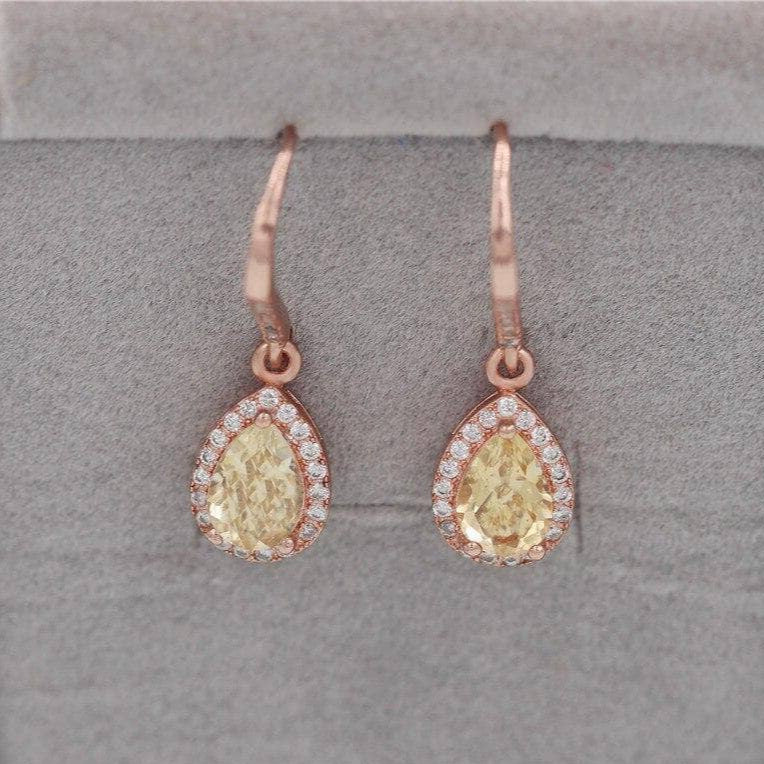 Water Drop Yellow Citrine Stone Dangle Earrings