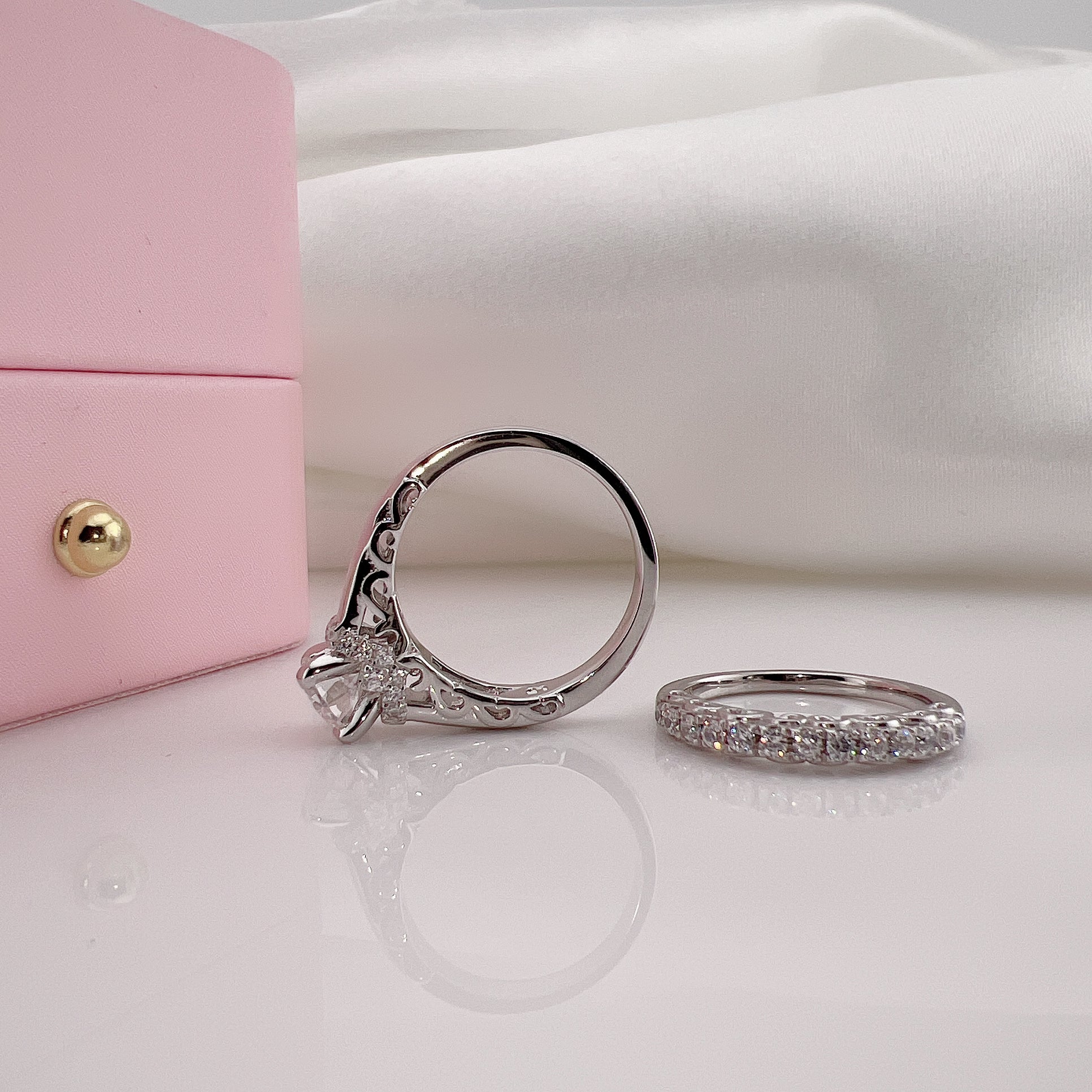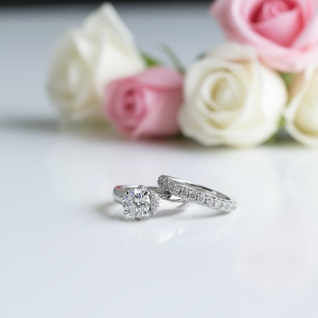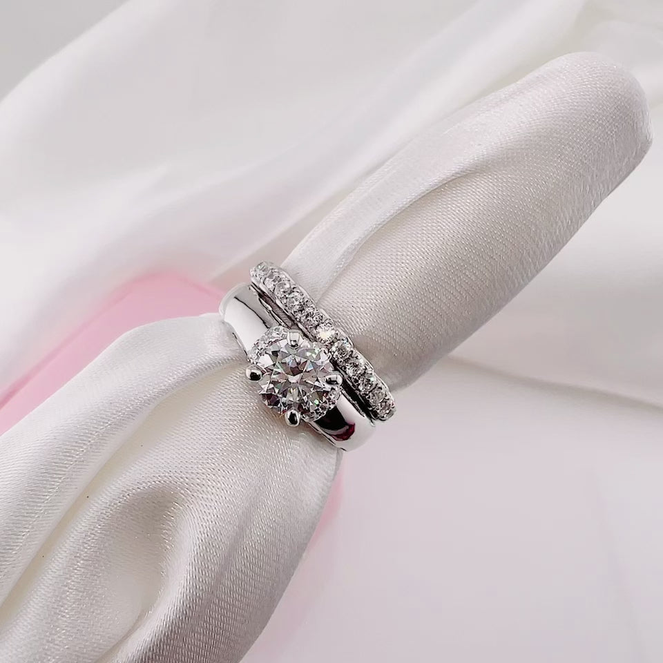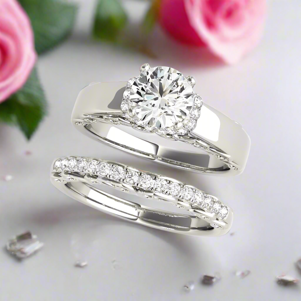 1.0 ct Round Cut Diamond Solitaire Ring Set
